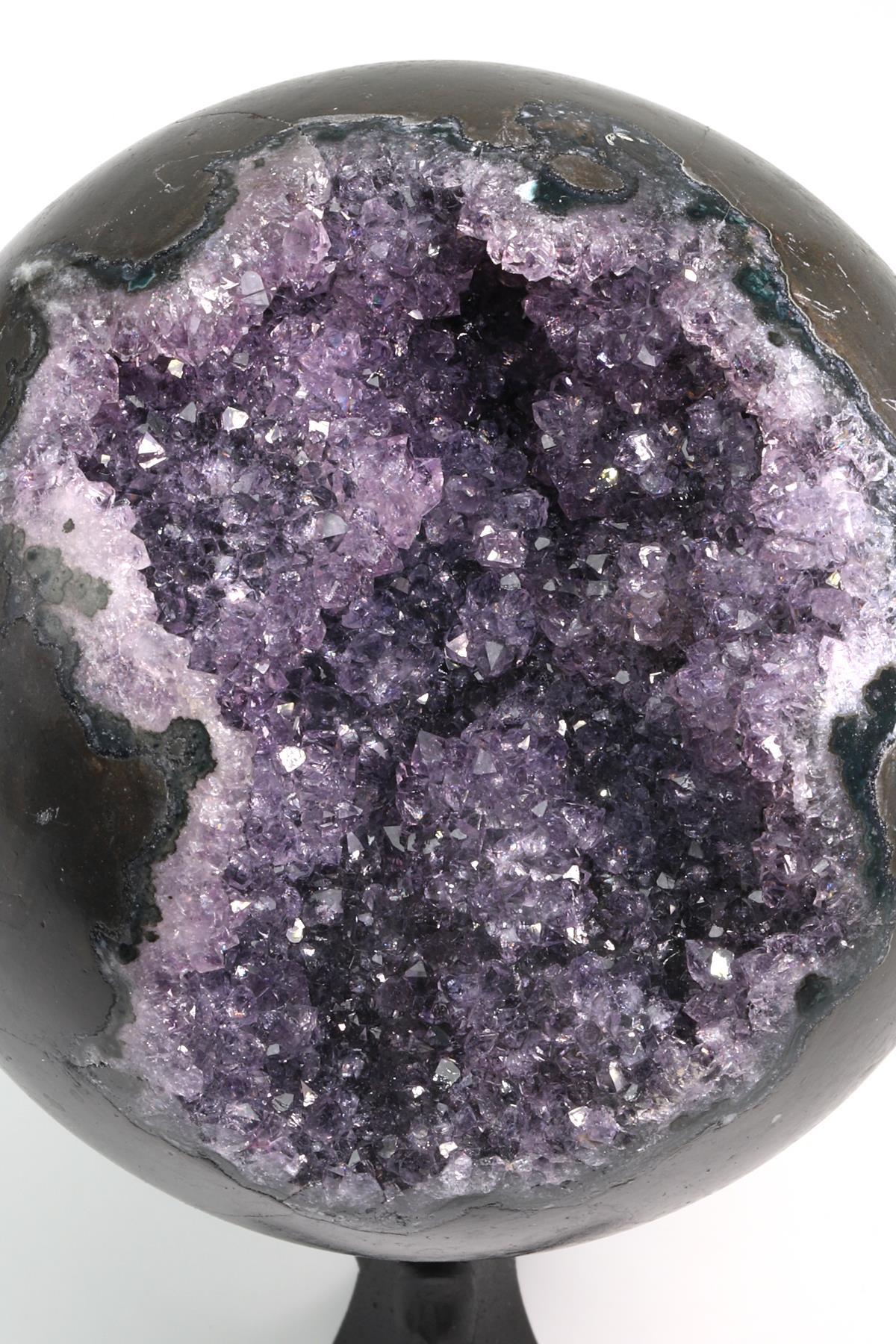 El işçiliğiyle parlatılmış yüzeyi, ametistin kendine özgü kristal yapısını ve ışık oyunlarını ön plana çıkarır. Ofis, çalışma masası, kitaplık veya vitrin gibi alanlarda sofistike bir doğal taş objesi olarak dikkat çeker. Her bir ametist küre, renk yoğunluğu ve kristal desenleri bakımından tamamen benzersizdir.