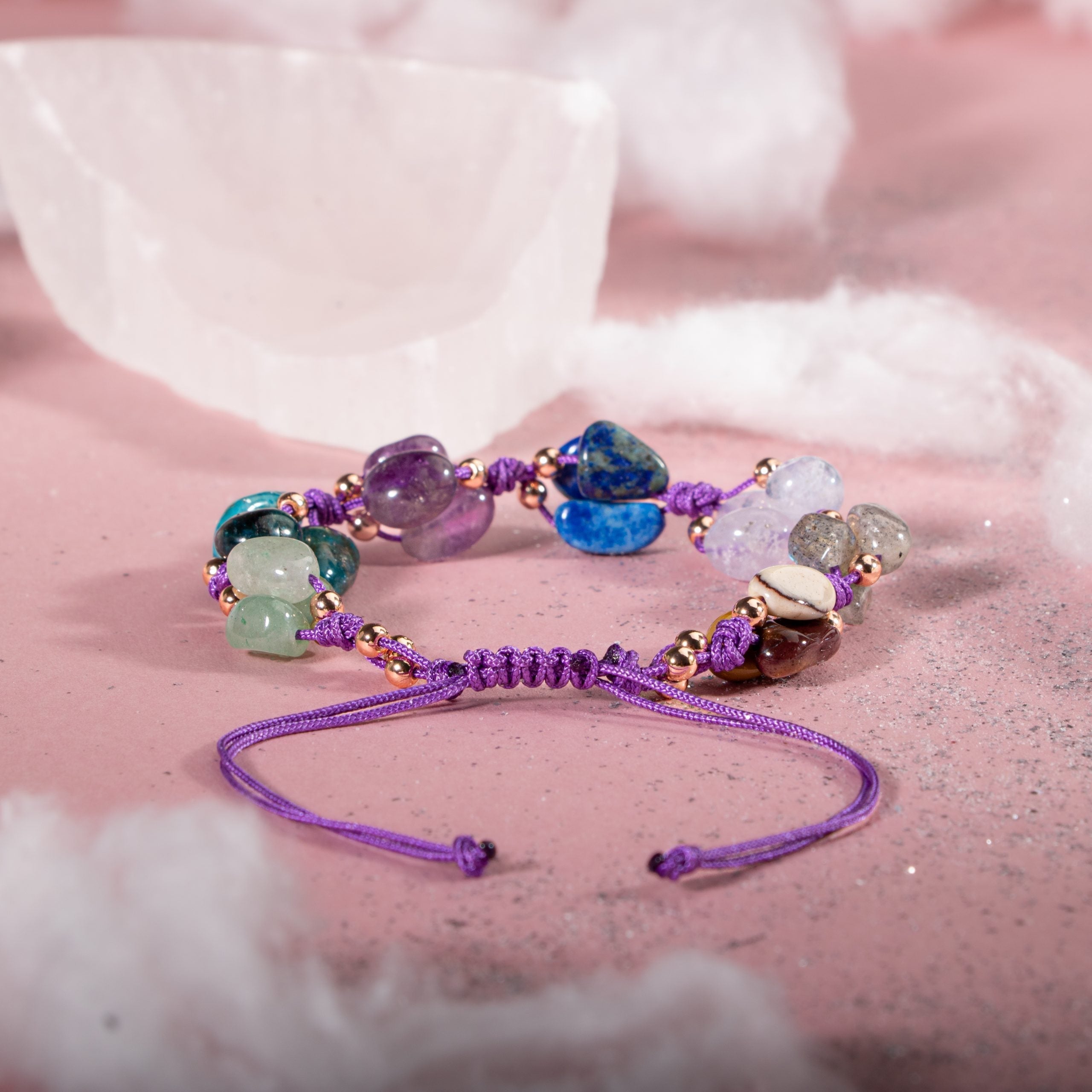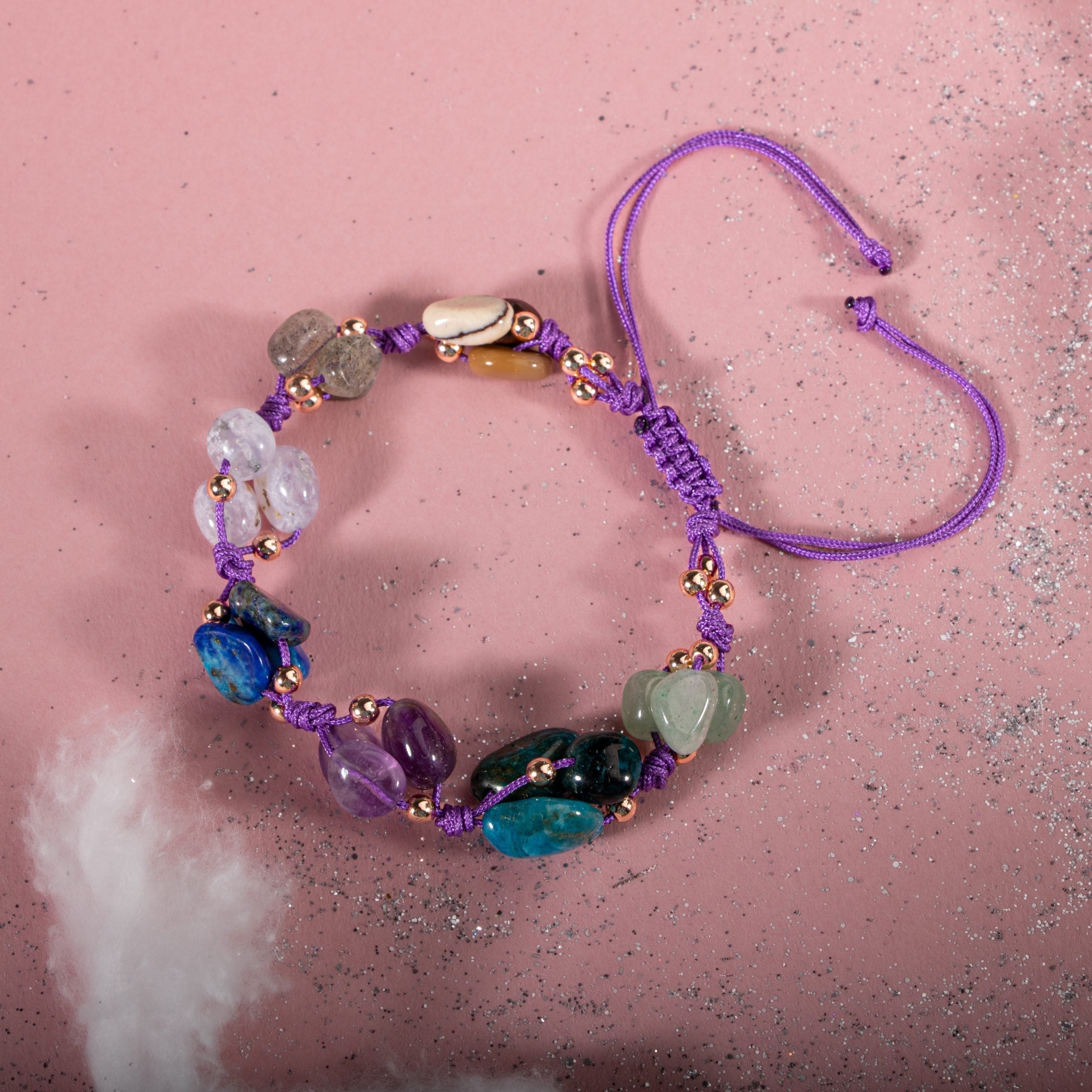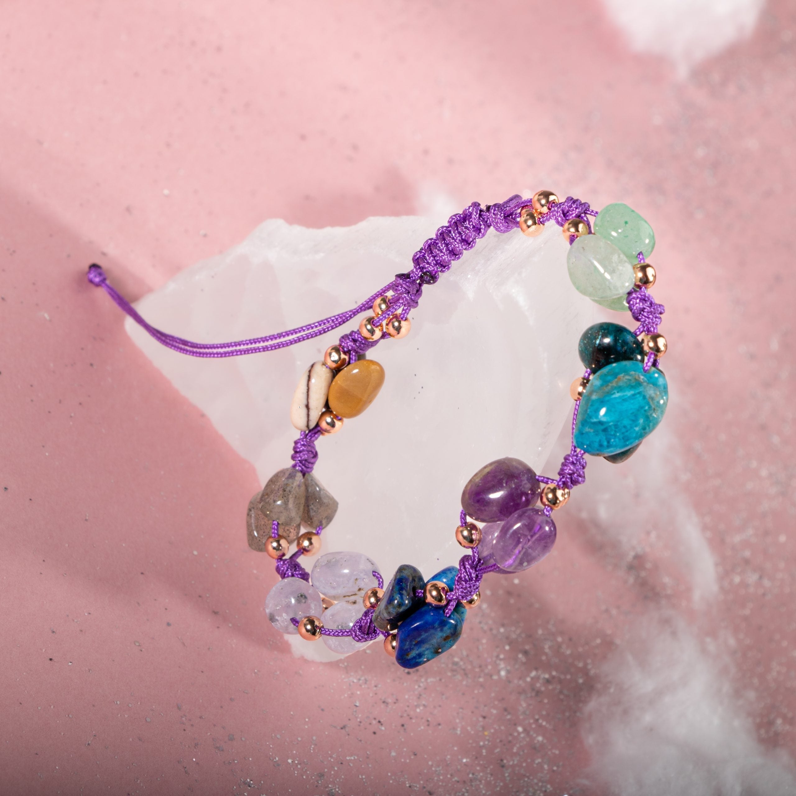 Yay Burcu Doğal Taş Makrome Bileklik – Ametist, Jasper, Kalsedon, Labradorit, Lapis Lazuli, Mavi Apatit, Yeşil Aventurin – Özel Tasarım