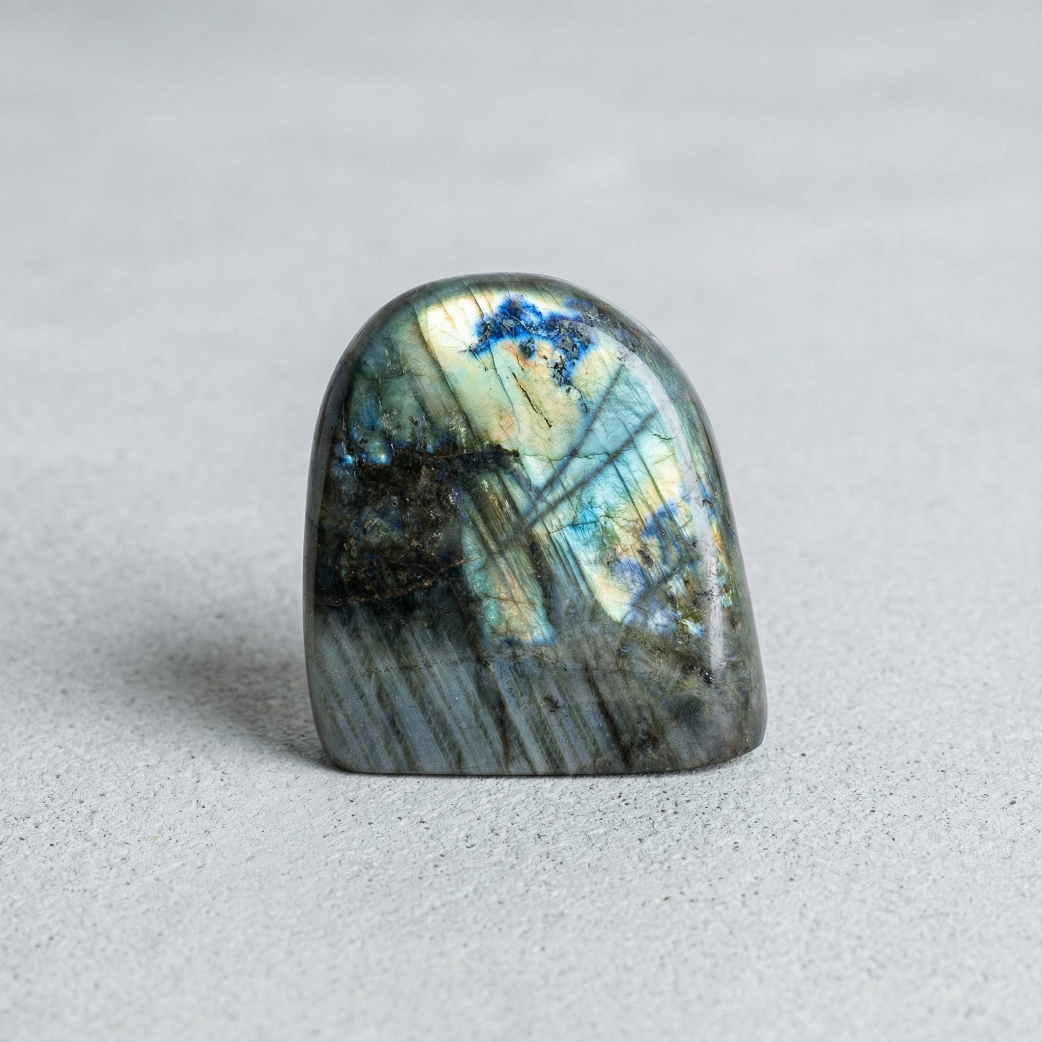 Mavi, yeşil ve gri yansımalarıyla ışığa göre renk değiştiren Labradorit, doğal taş koleksiyonlarının en büyüleyici minerallerinden biridir. Safnaturel’in seçkisinde yer alan bu ham parça, labradoritin karakteristik “labradoresans” etkisini güçlü bir şekilde yansıtır ve geniş yüzeylerinde etkileyici ışık oyunları sunar.
