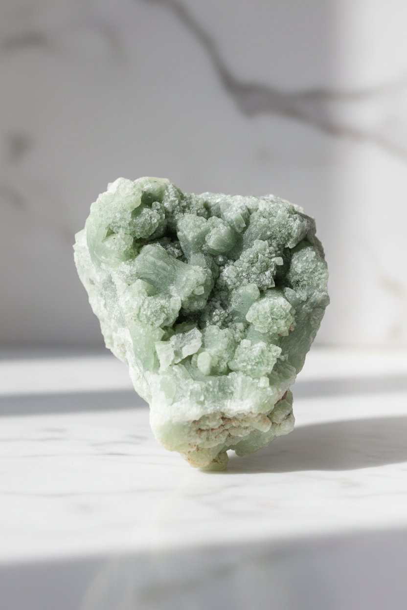 Safnaturel’in özel koleksiyonunda yer alan Prehnite Doğal Taş Ham Parça, açık yeşil tonları ve yarı saydam kristal yapısıyla doğanın zarif estetiğini yansıtır. 4 cm genişliğinde, 5 cm uzunluğunda ve 100 gram ağırlığındaki bu parça, prehnite taşının doğal parlaklığını ve mineral dokusunu özgün formunda korur.