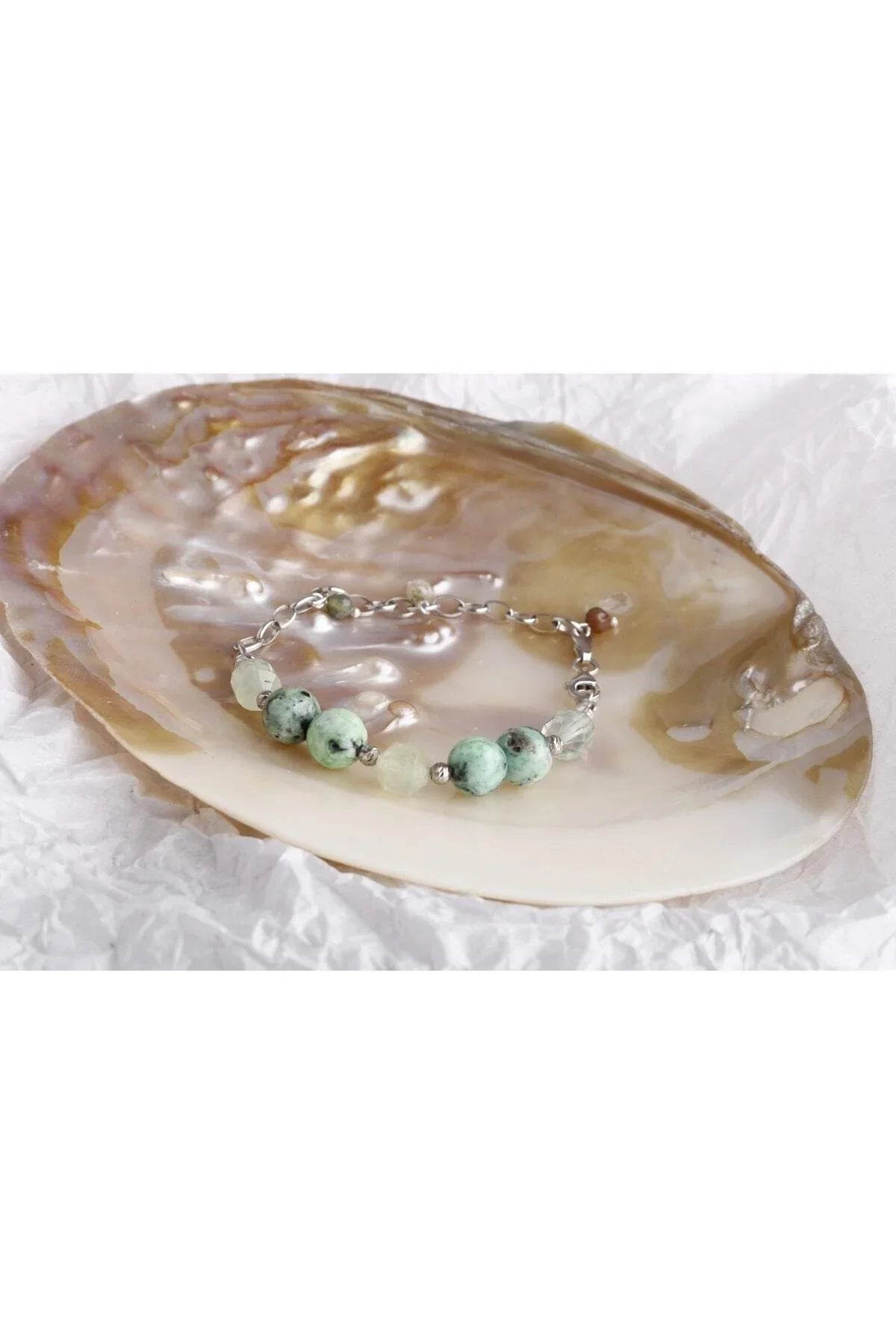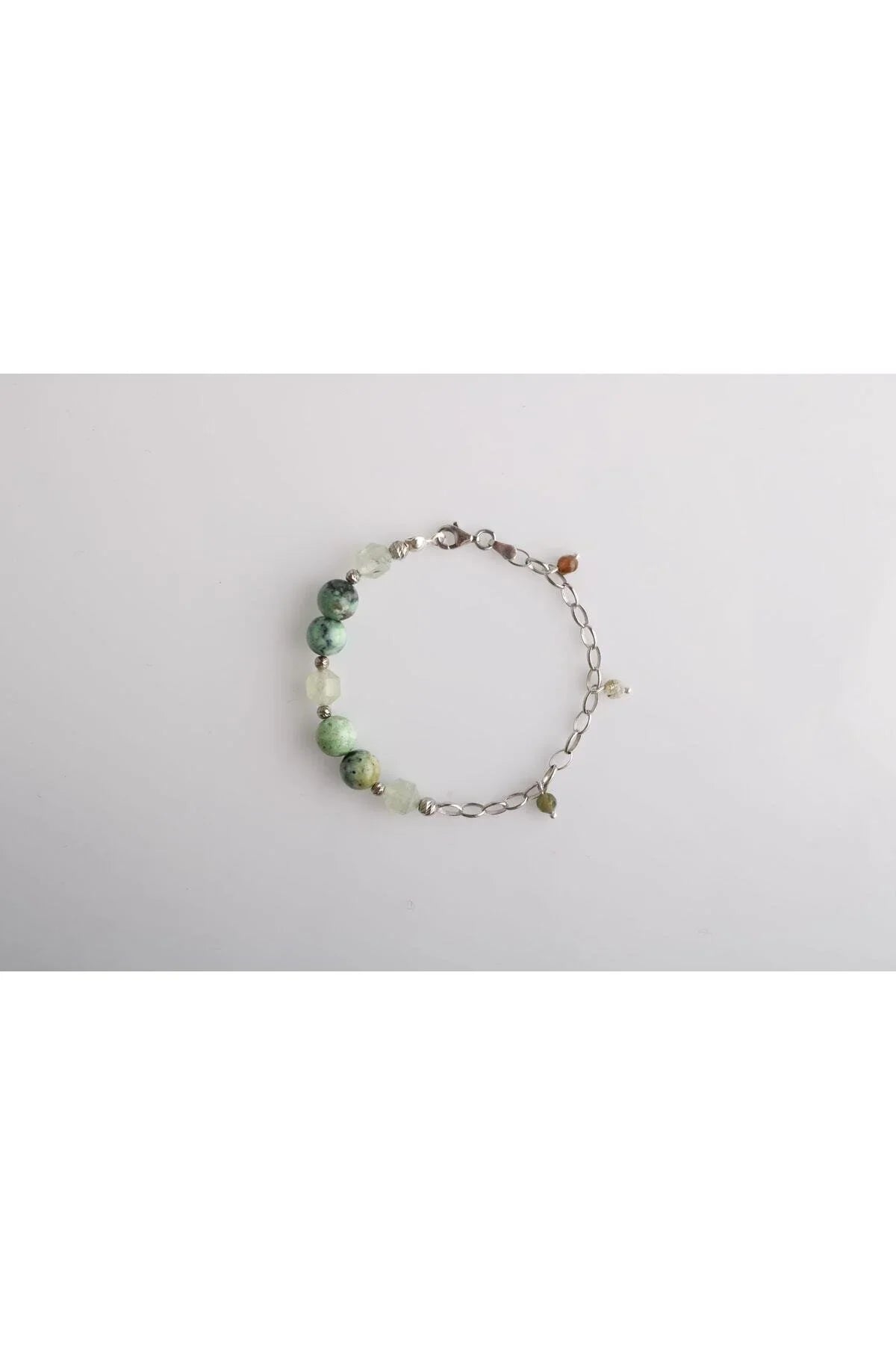 Amazonya, İspanyol Varisit-Prehneit-Akik Doğal Taş Gümüş Bileklik