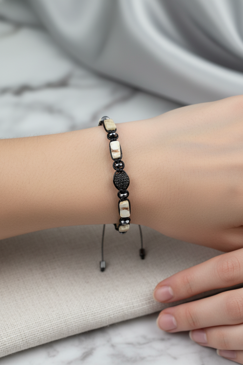 Doğal taşların enerjisini modern bir çizgide sunan bu bileklik, tarzına canlılık ve zarafet katmak isteyenler için ideal bir seçimdir.