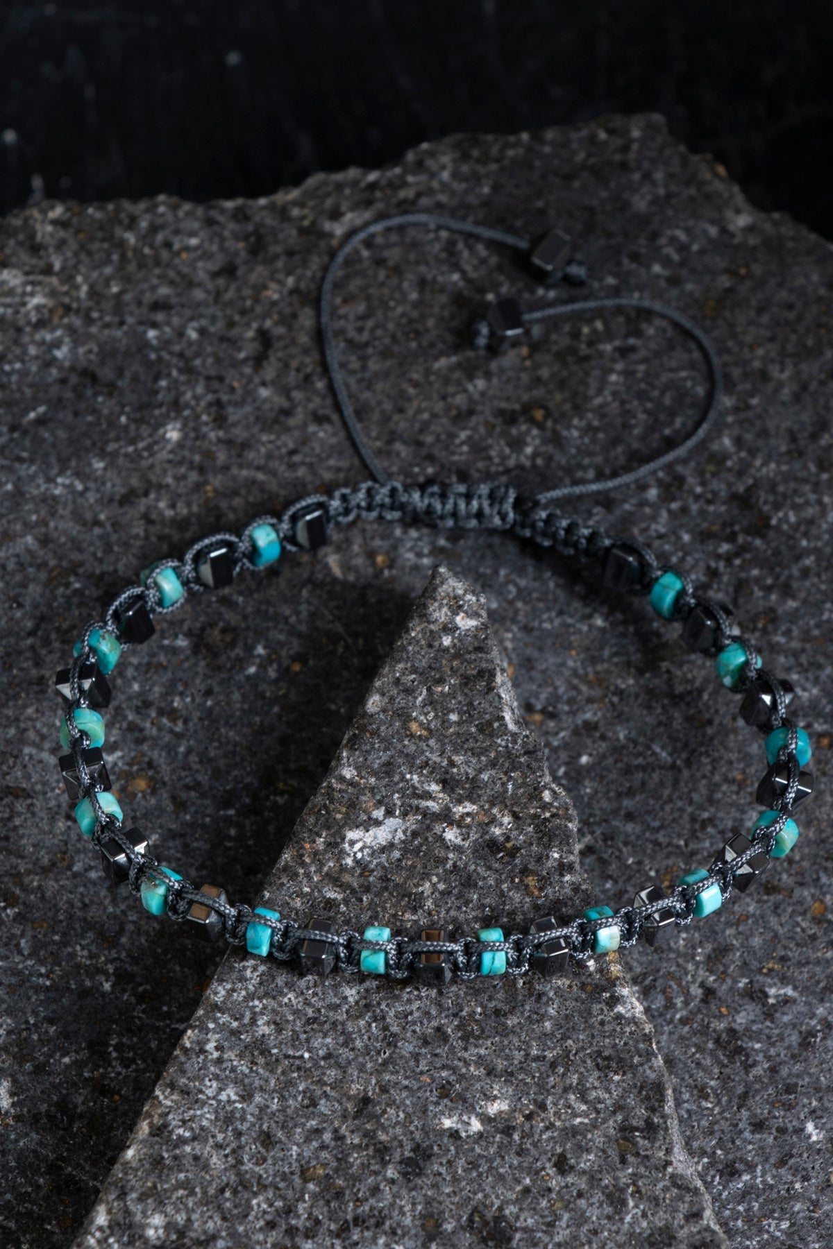 Sertifikalı Turkuaz – Hematit Doğaltaş Makrome Bileklik