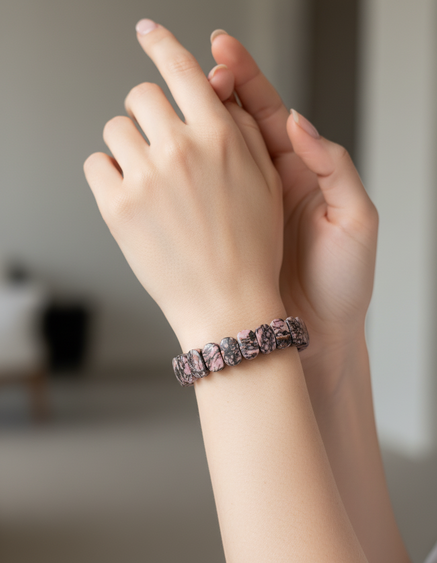 Rodonit taşı; sevgi, denge ve duygusal iyileşme ile ilişkilendirilir. Doğal enerjisi ve canlı görünümü sayesinde hem ruhsal hem estetik anlamda zenginlik sunar. Gündelik zarafetini doğallıkla bütünleştirmek isteyenler için mükemmel bir seçimdir.
