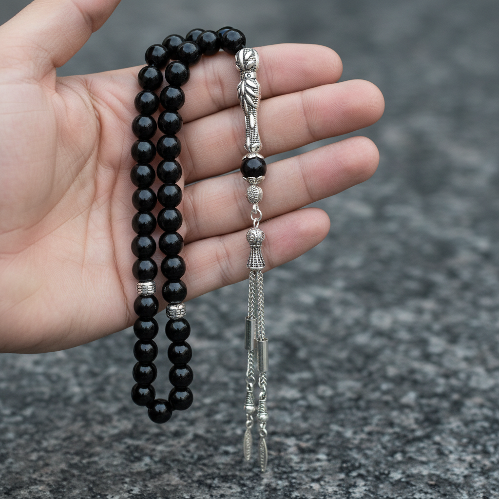 Top Desenli Obsidyen Doğal Taş Tesbih 8 mm Küre Kesim