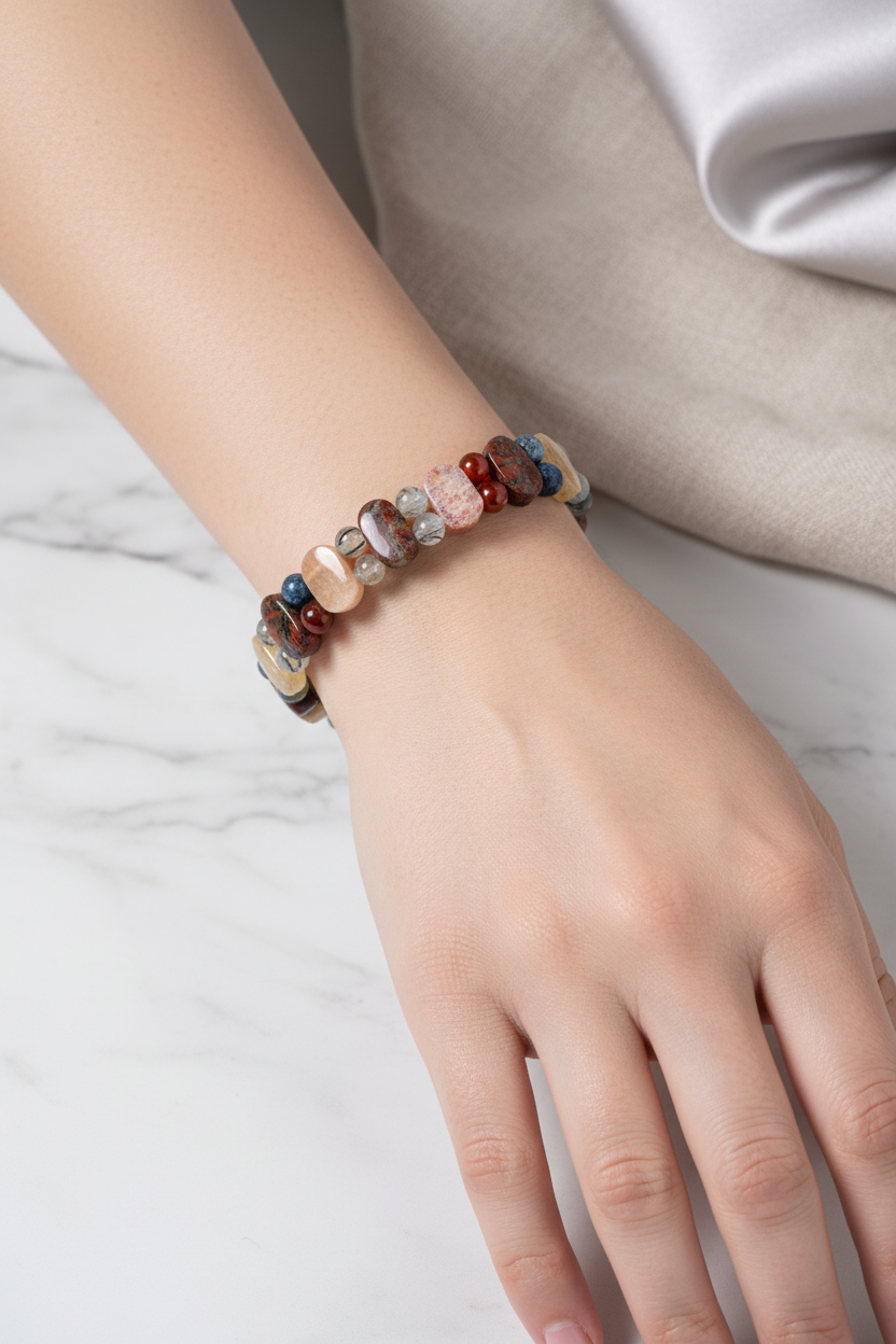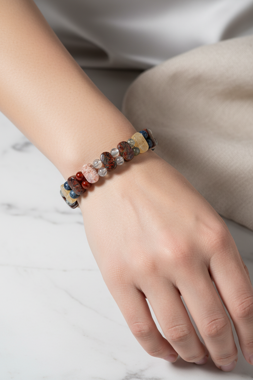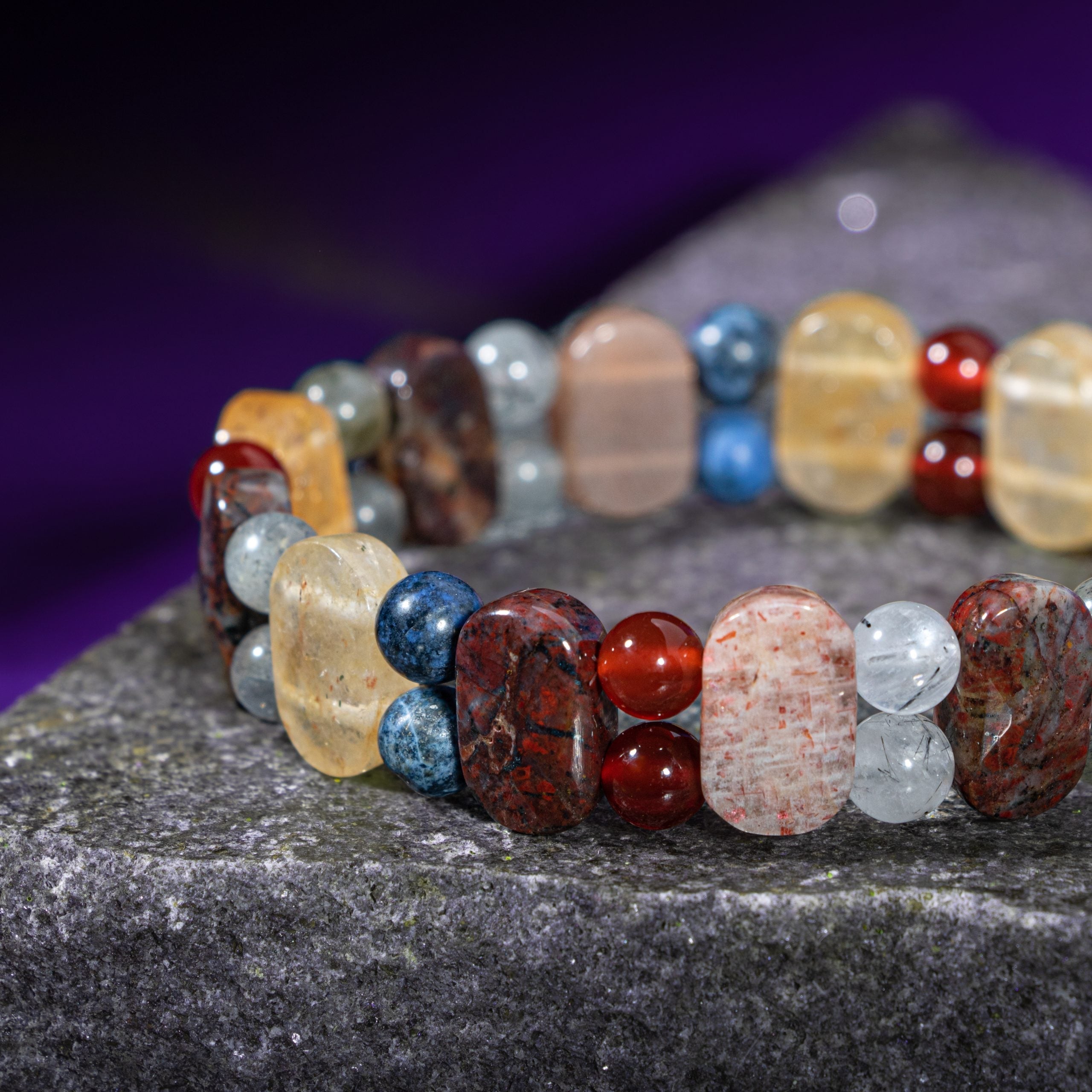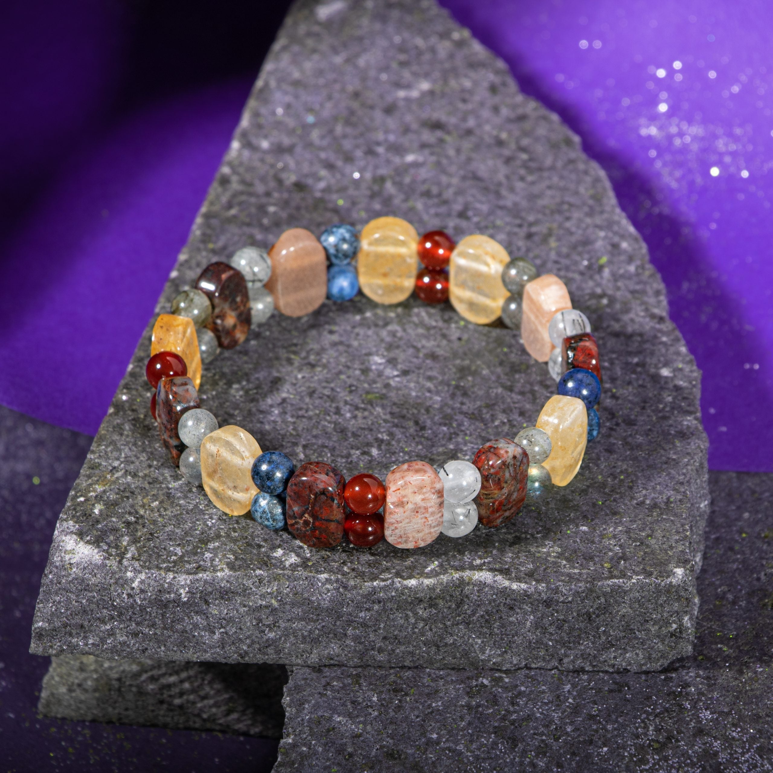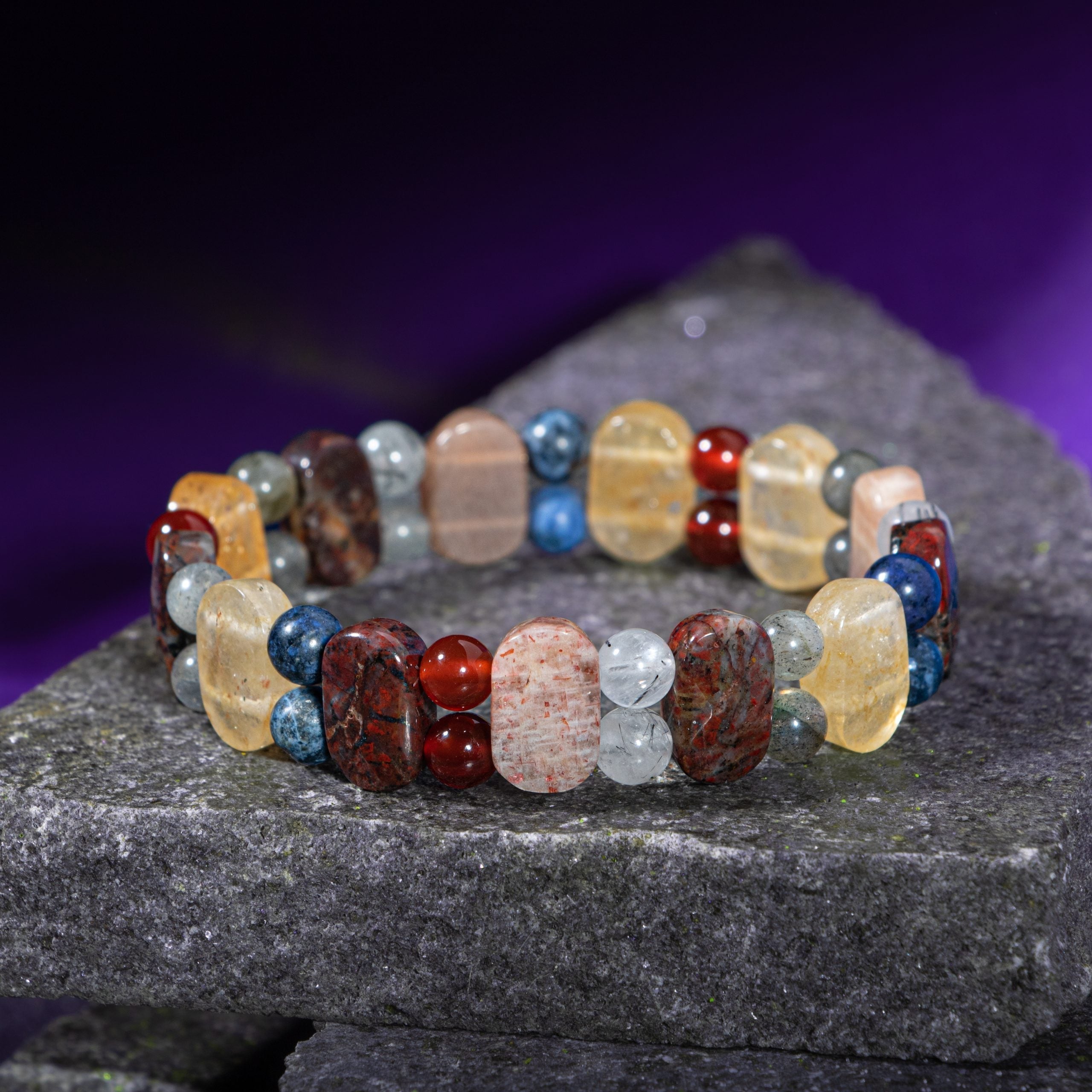 Aslan Burcu Doğal Taş Bileklik – Bronzit, Dumortierit, Güneş Taşı, Jasper, Akik, Labradorit, Rutilli Kuvars & Sitrin