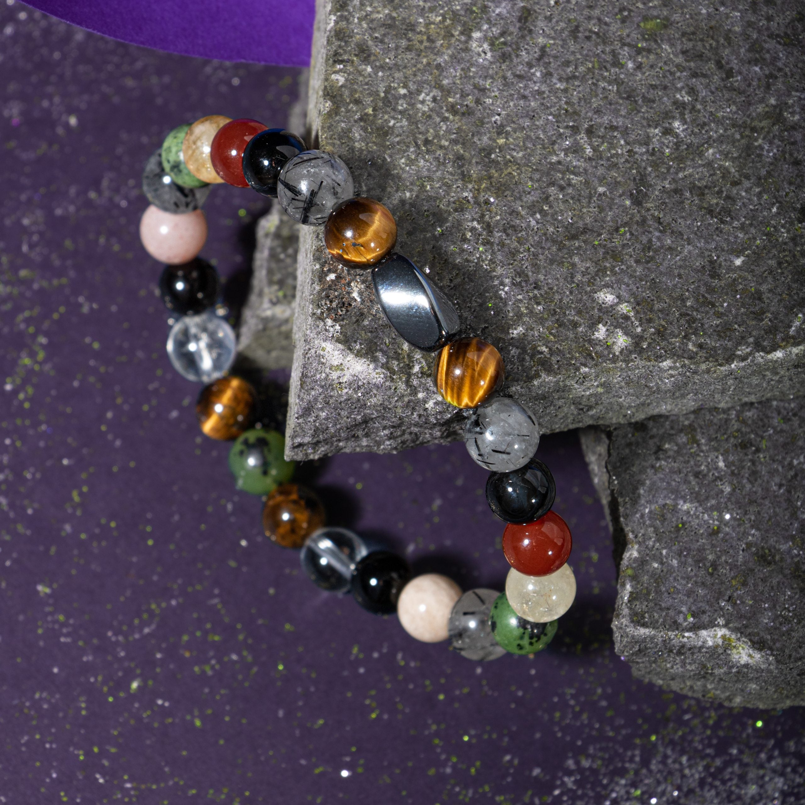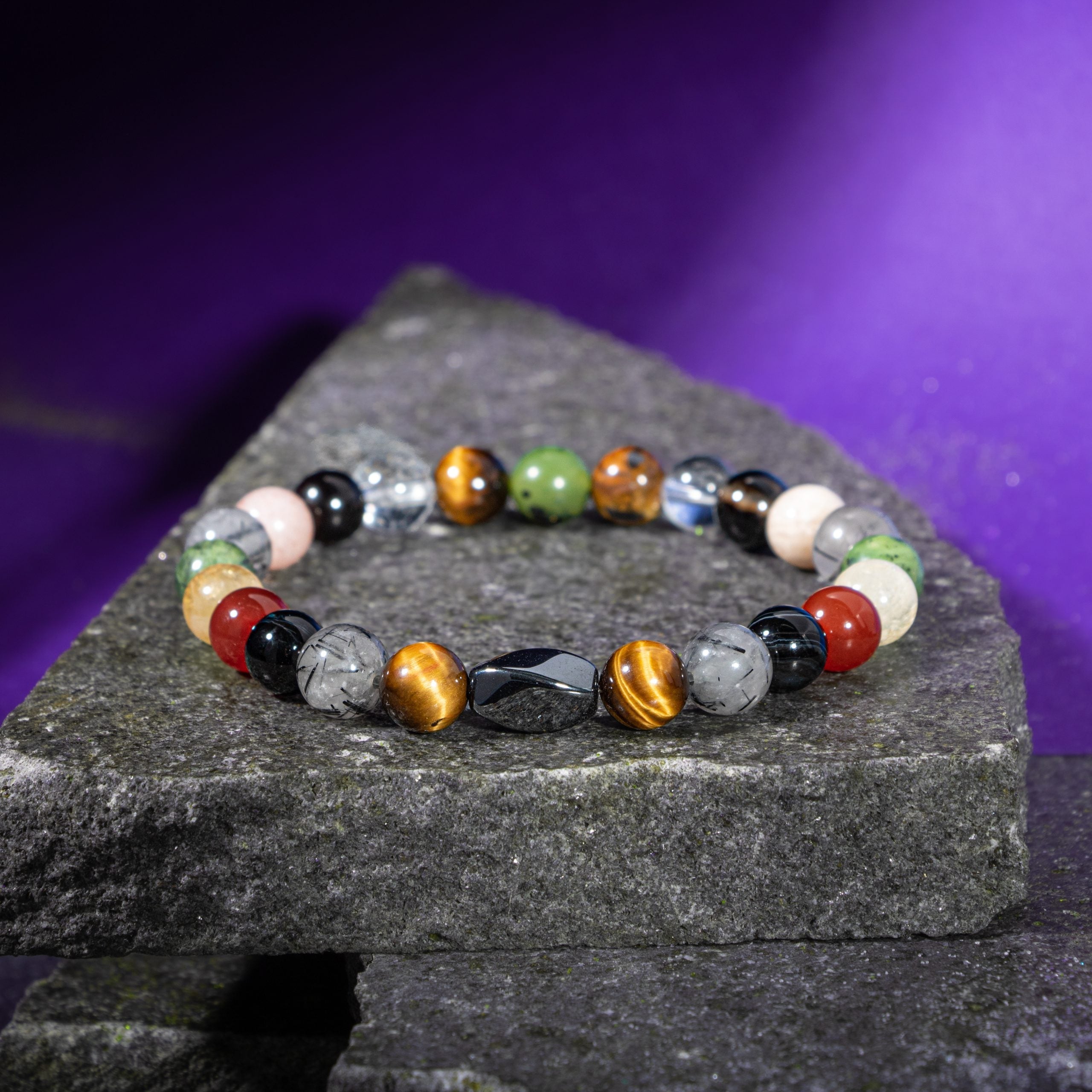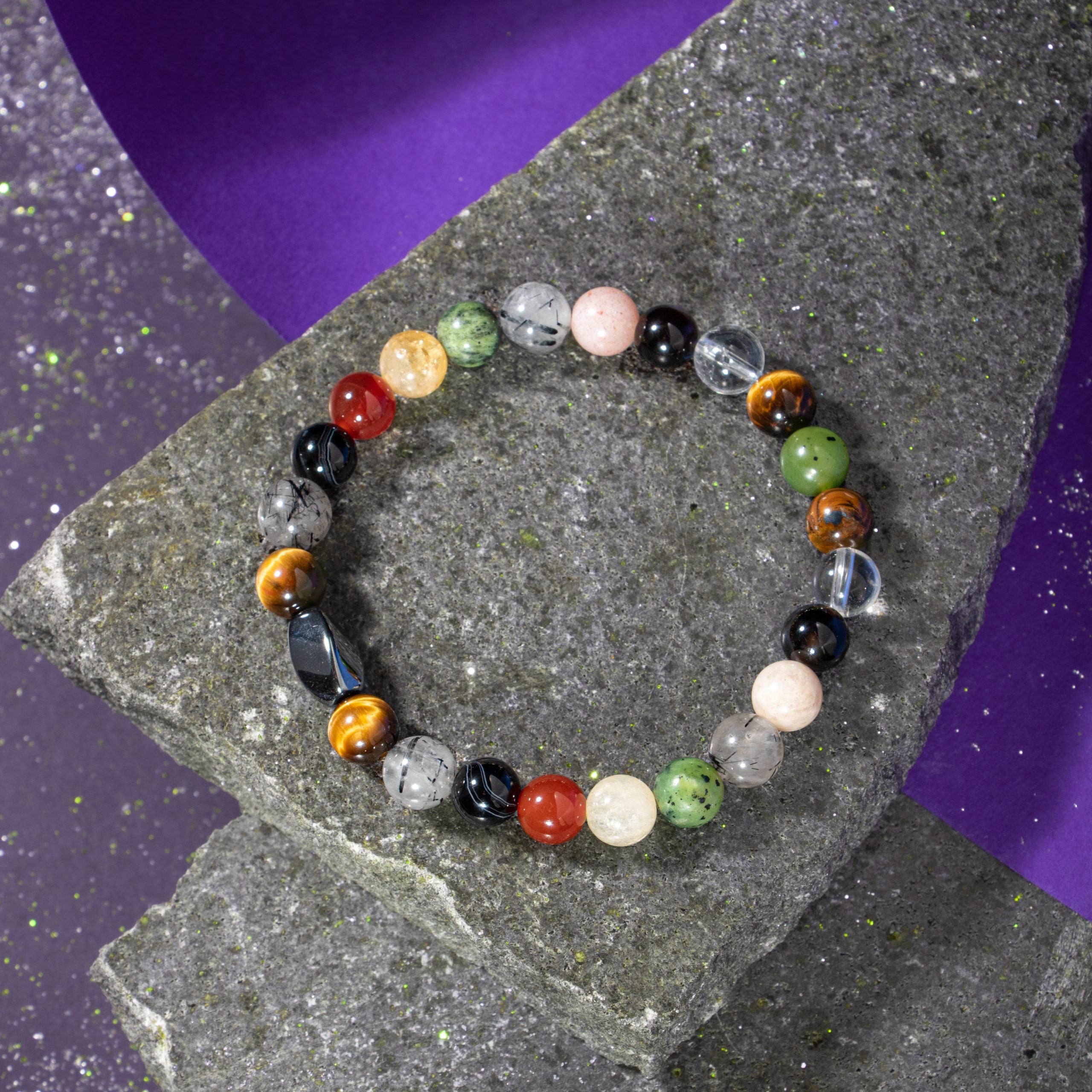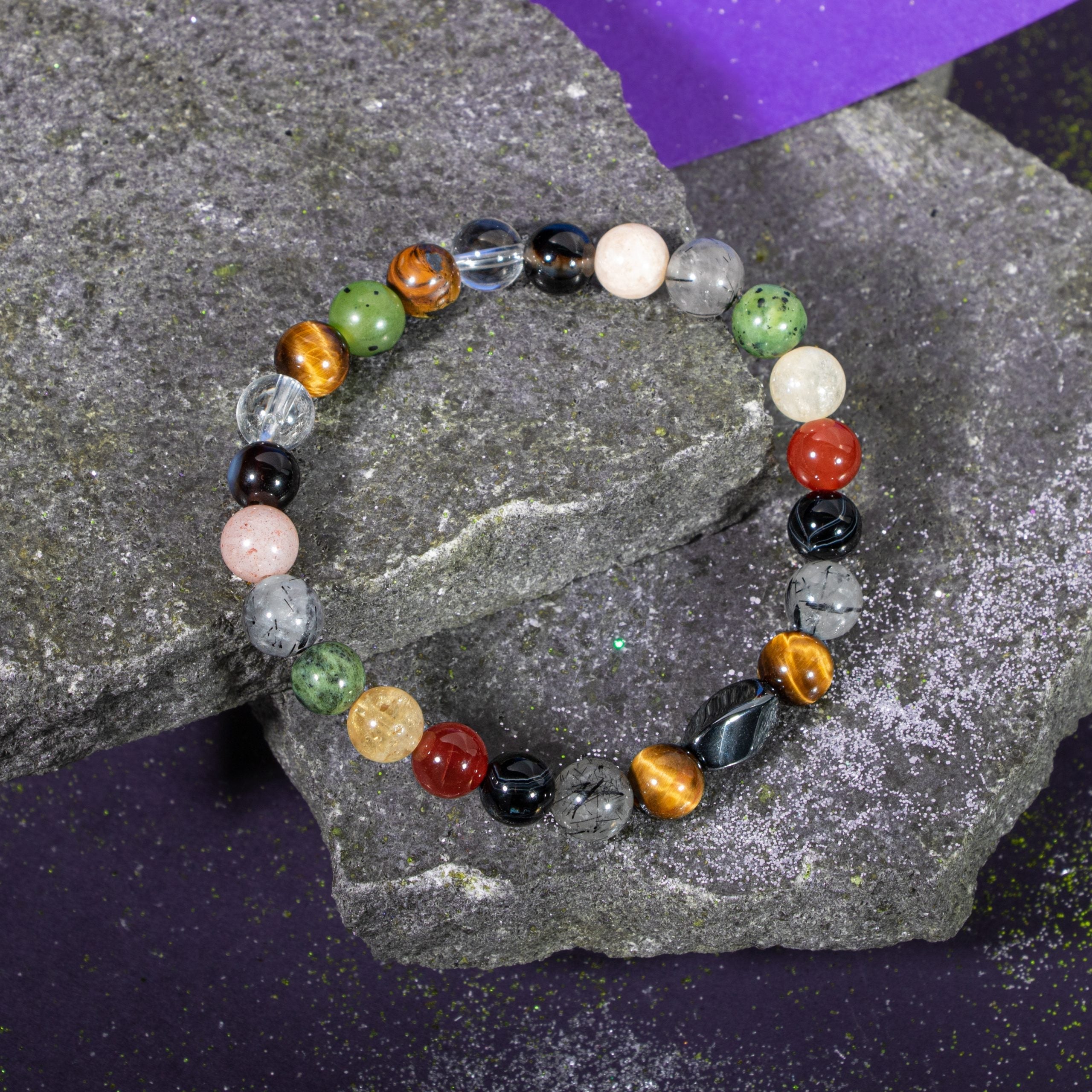 İkizler Burcu Doğal Taş Bileklik – Güneş Taşı, Kaplan Gözü, Kırmızı Akik, Kristal Kuvars, Rutilli Kuvars, Sitrin & Yeşim