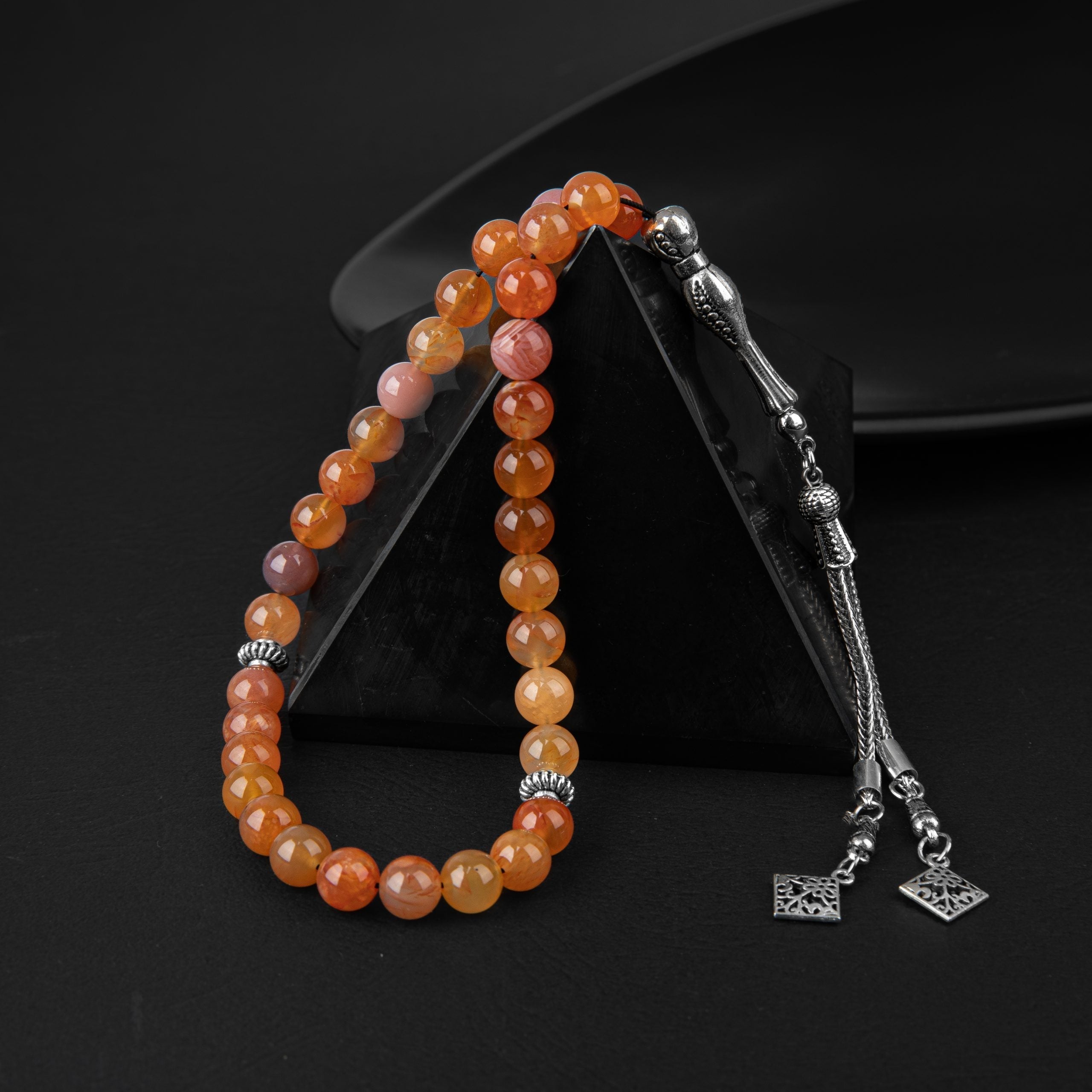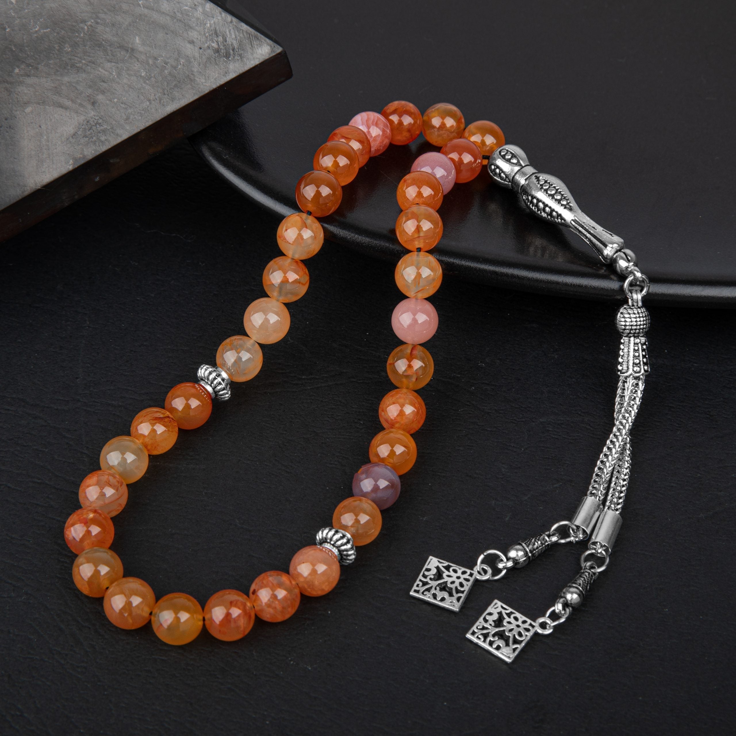 Karnelyan Akik Doğal Taş Tesbih 33’lük – 8mm El İşçiliği