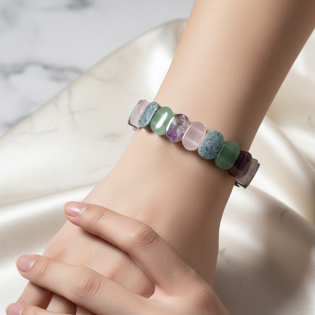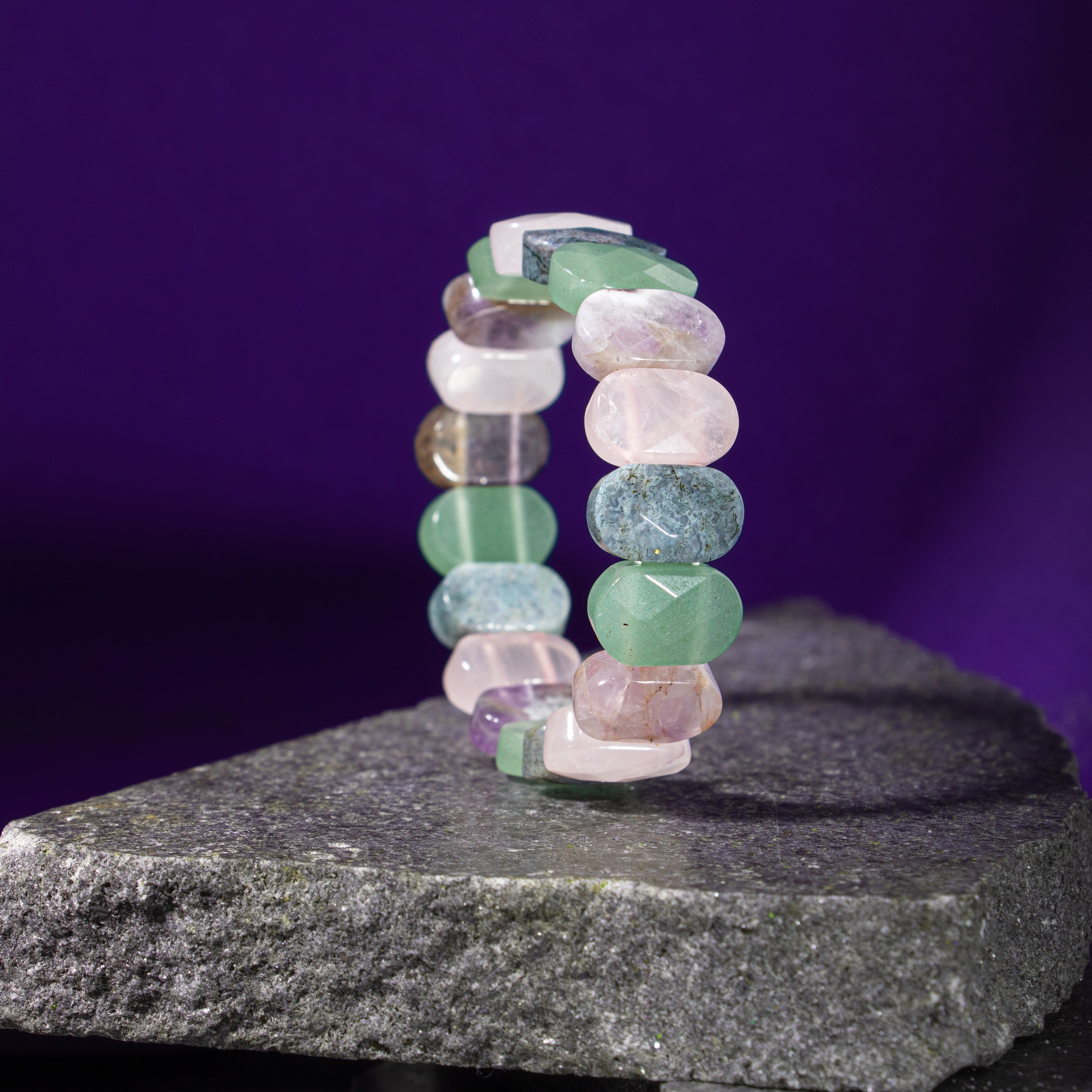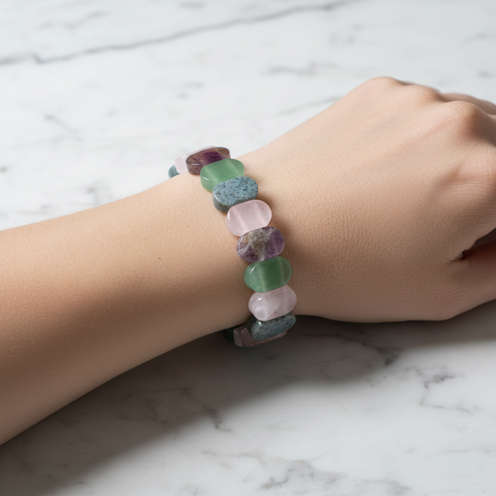 Oğlak Burcu Doğal Taş Bileklik – Ametist, Pembe Kuvars, Yeşil Aventurin & Yosunlu Akik