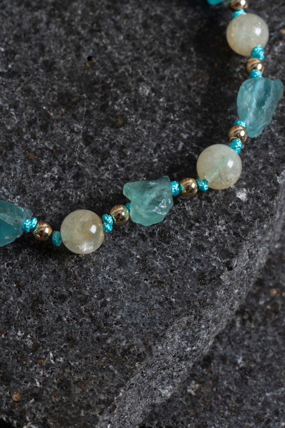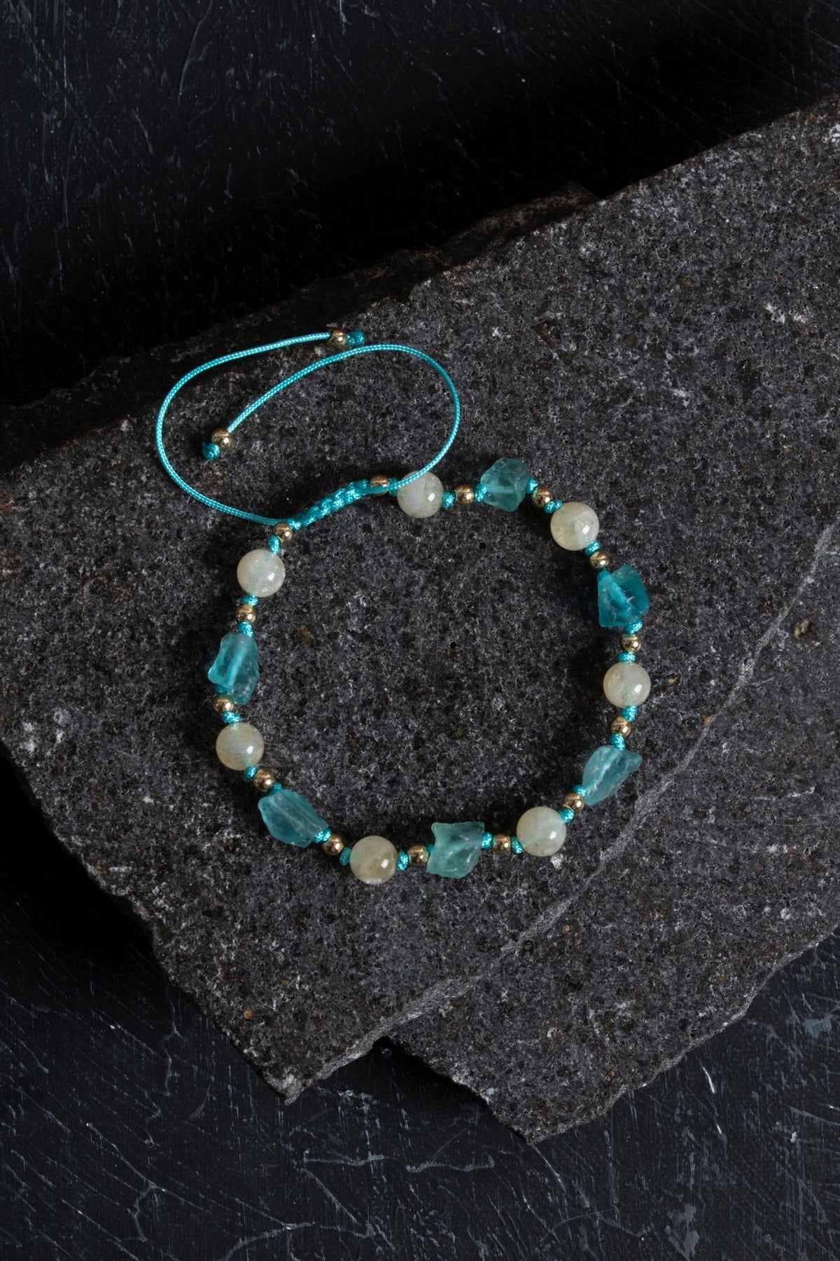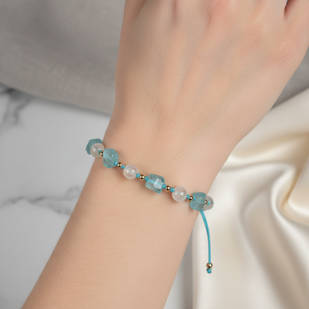Apatit ve naturel sitrin taşlarının uyumuyla tasarlanan bu doğal taş makrome bileklik, modern ve şık tasarımıyla öne çıkar. El işçiliğiyle özenle örülen dayanıklı makrome örgü, günlük kullanımda ve özel günlerde estetik bir tamamlayıcıdır.