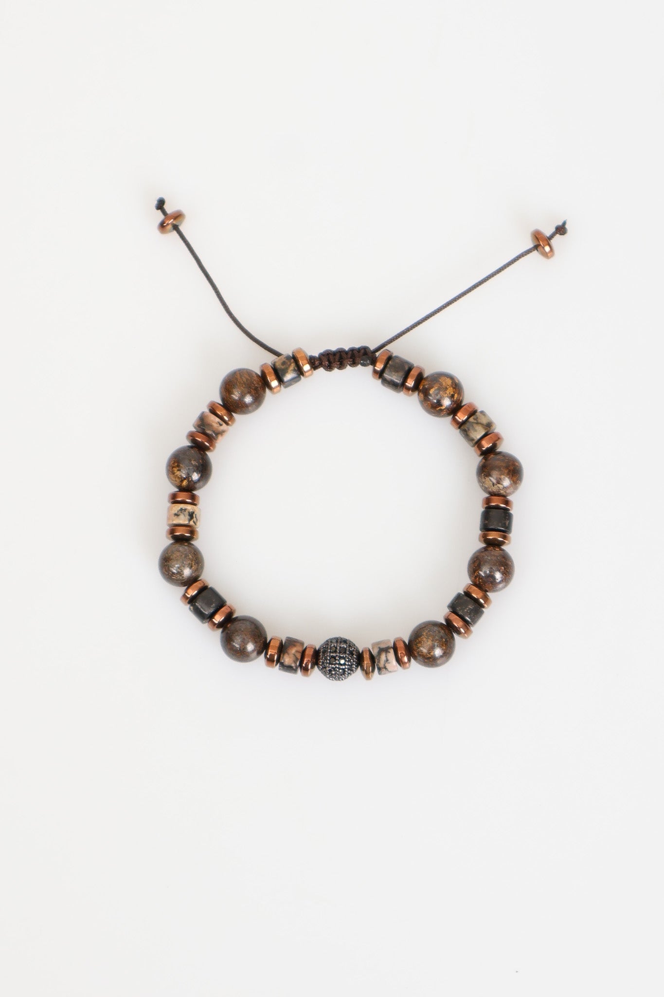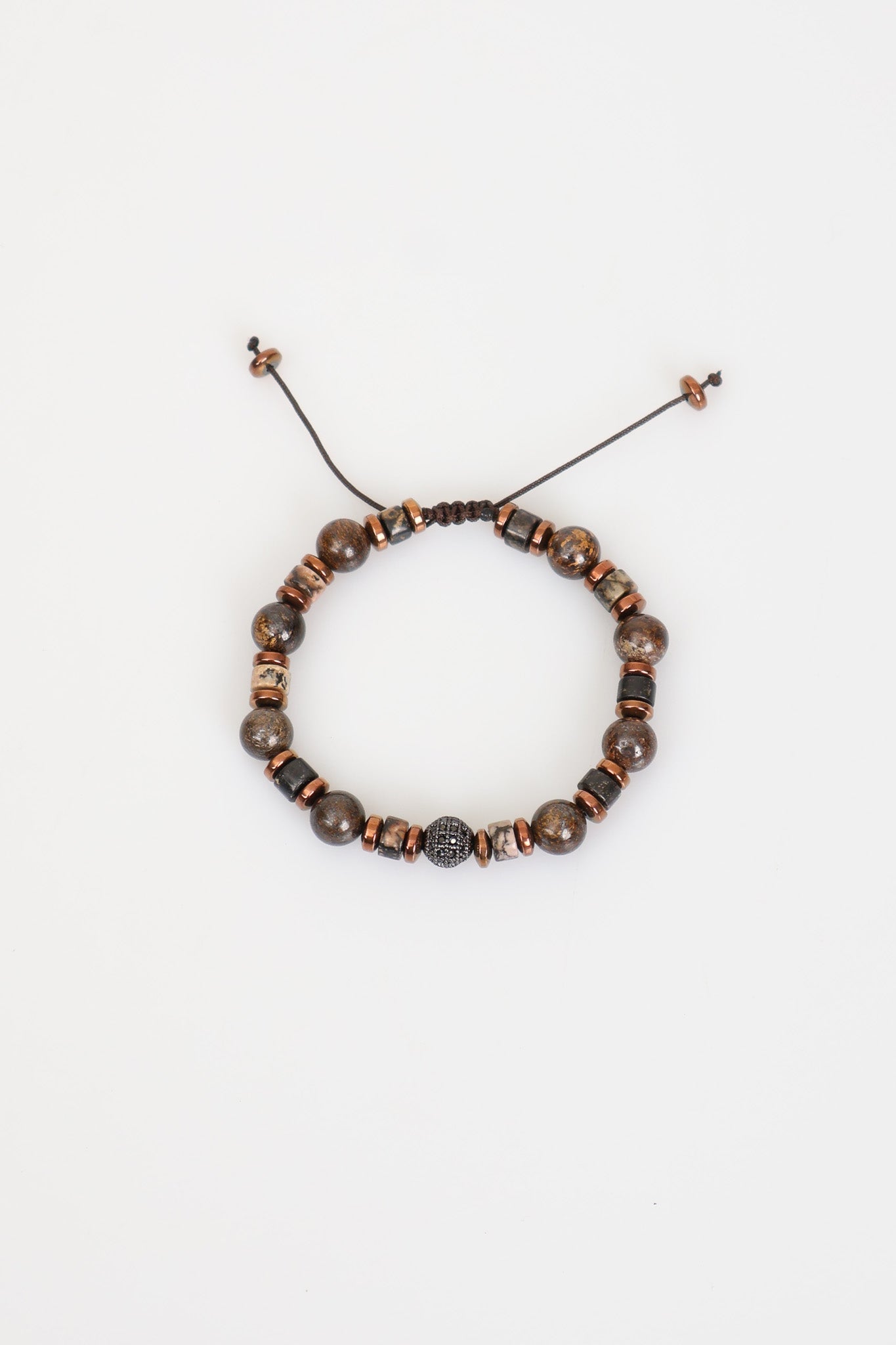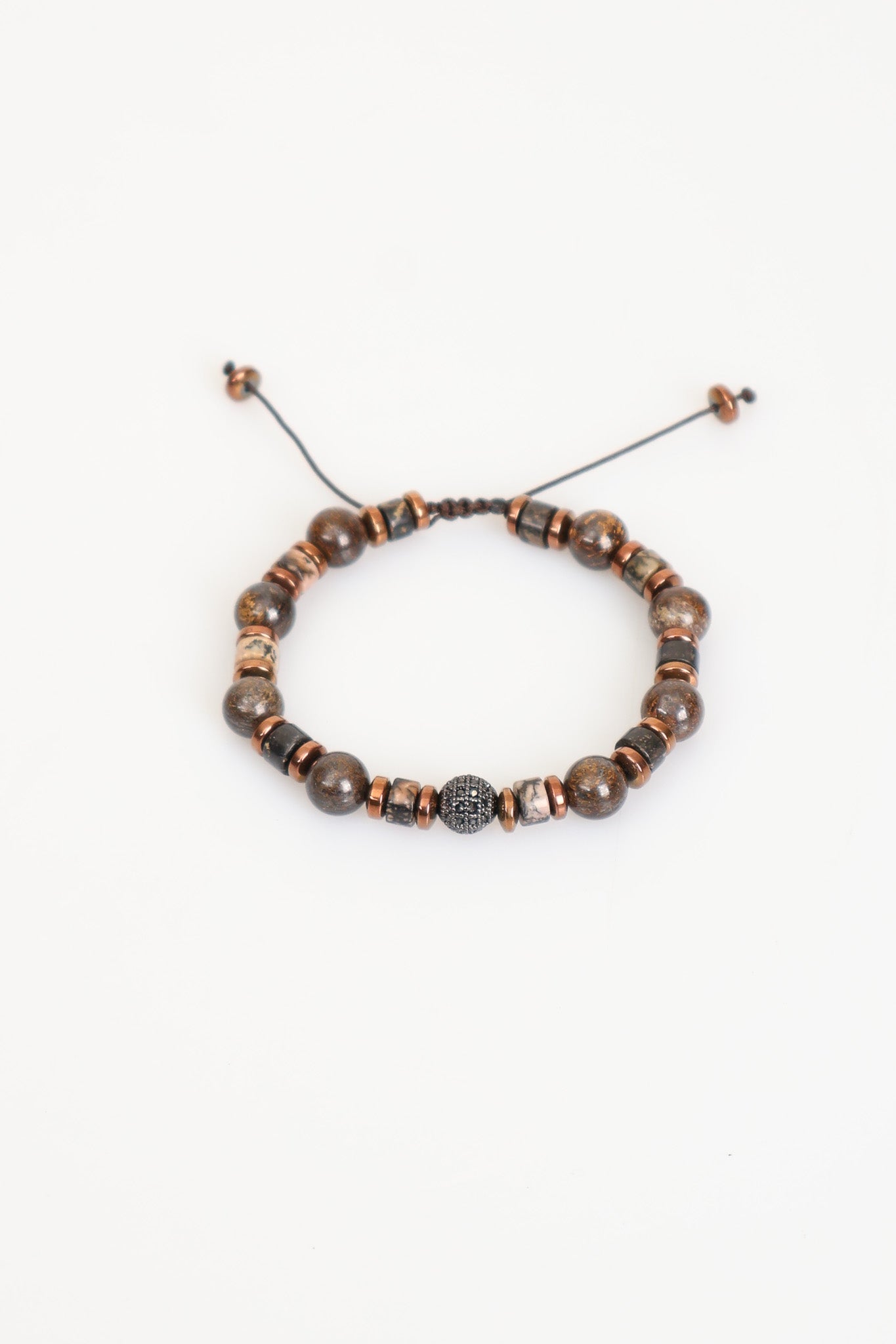 Rodonit - Bronzit - Hematit Doğal Taş Zirkon Aparatlı Makrome Bileklik