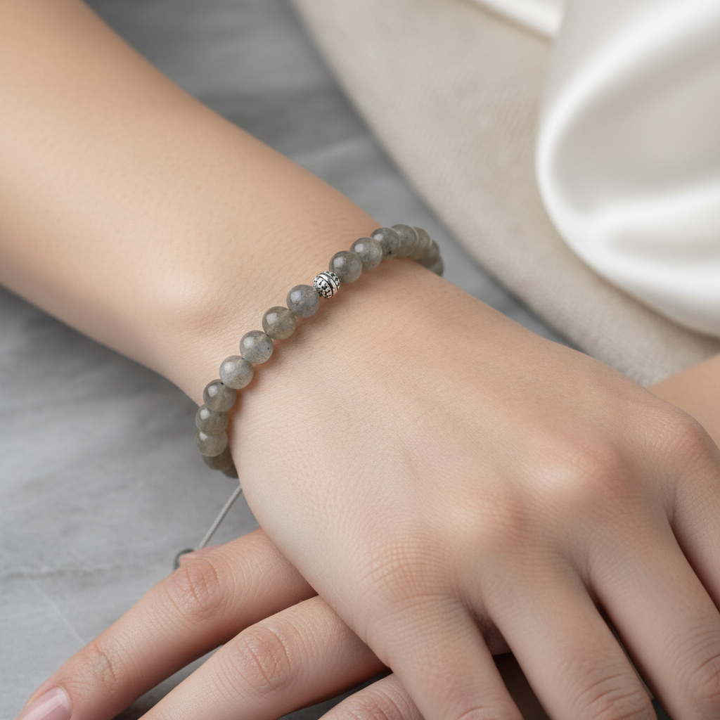 Labradorit 6 mm Merdiven Kapama Doğal Taş Bileklik – El İşçiliği