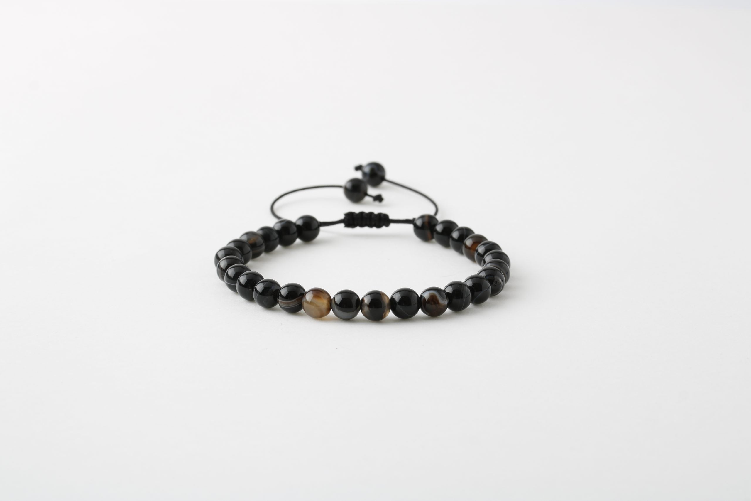 Siyah Göz Akik 6 mm Merdiven Kapama Doğal Taş Bileklik – El İşçiliği