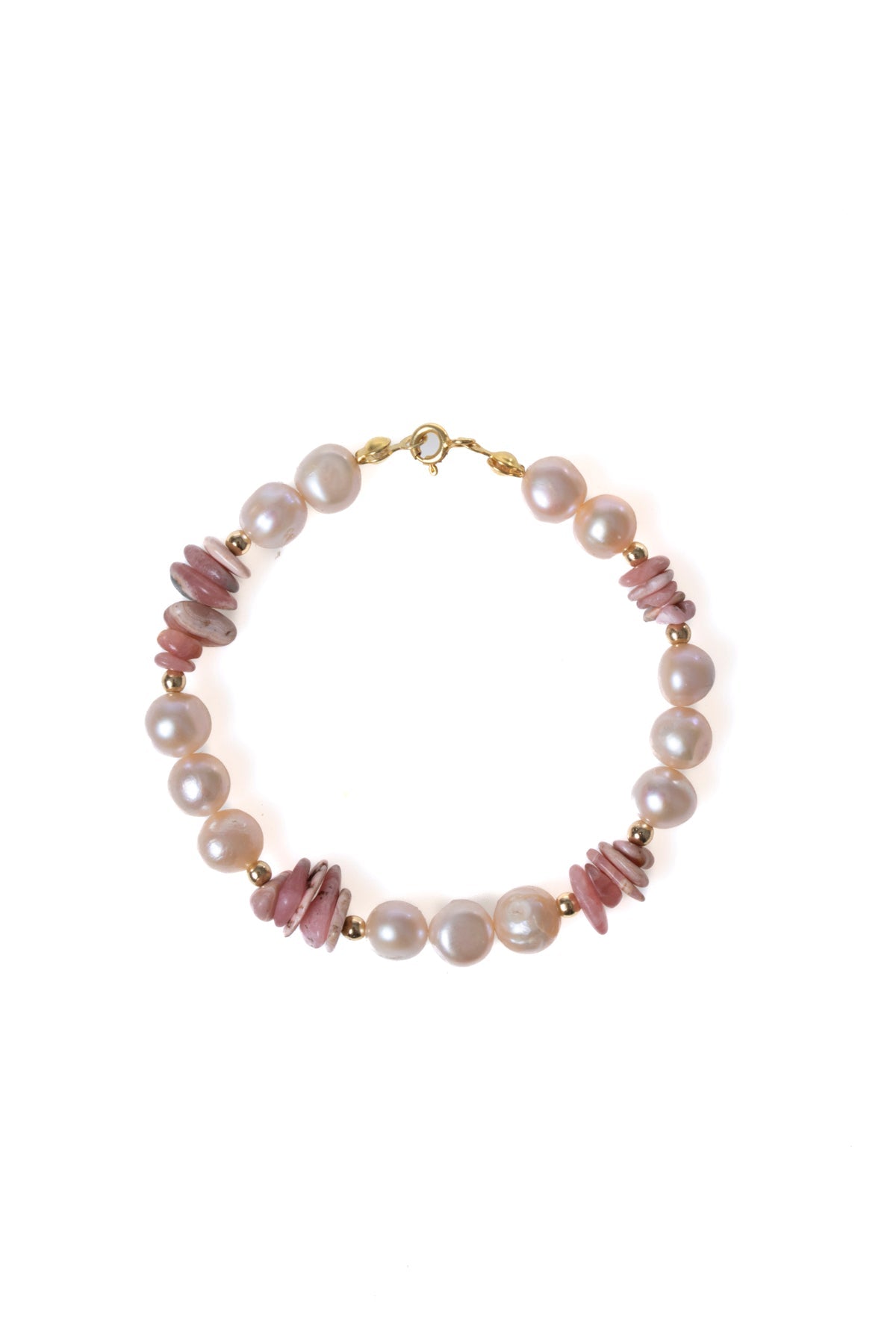 Rodokrozit, İnci Doğal Taş Gümüş Bileklik