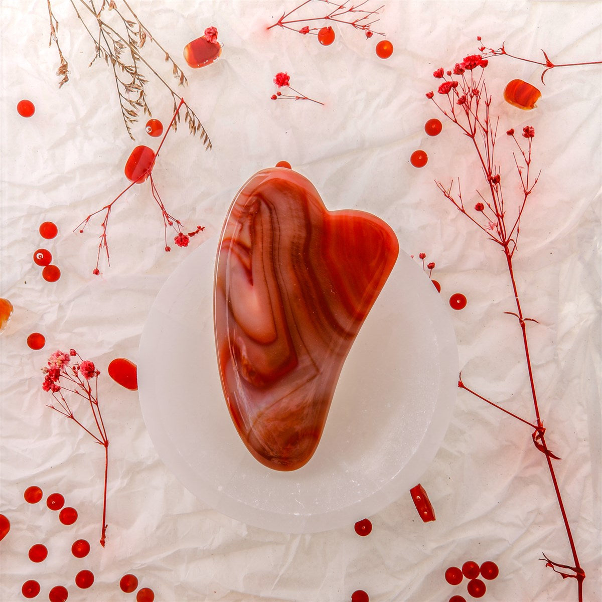 Kırmızı Akik Doğal Taş Gua Sha Kalpli Yüz Masaj Taşı – Cilt Bakımı