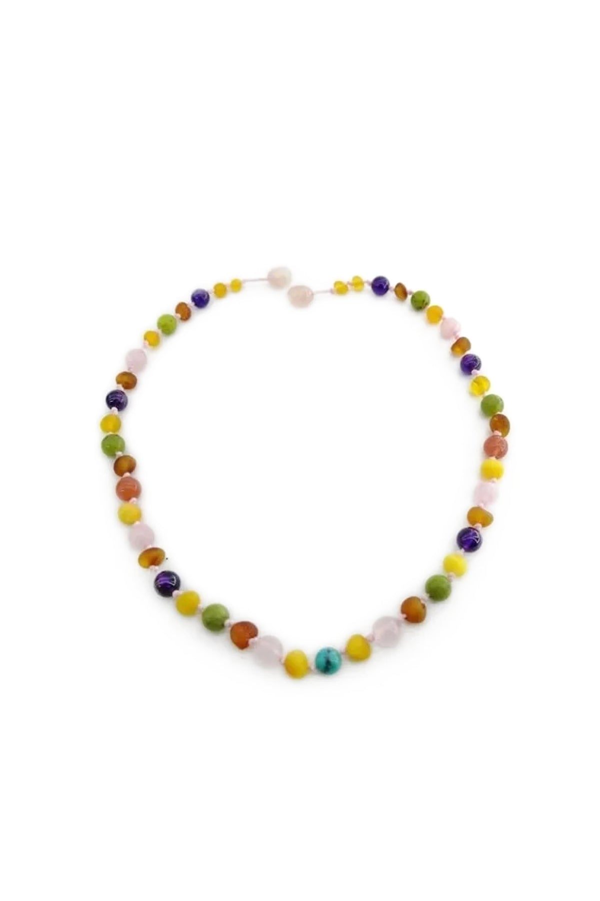 Kehribar – Yeşim – Ametist – Yemen Akik & Hakiki Turkuaz Doğal Taş Bebek Kolyesi
