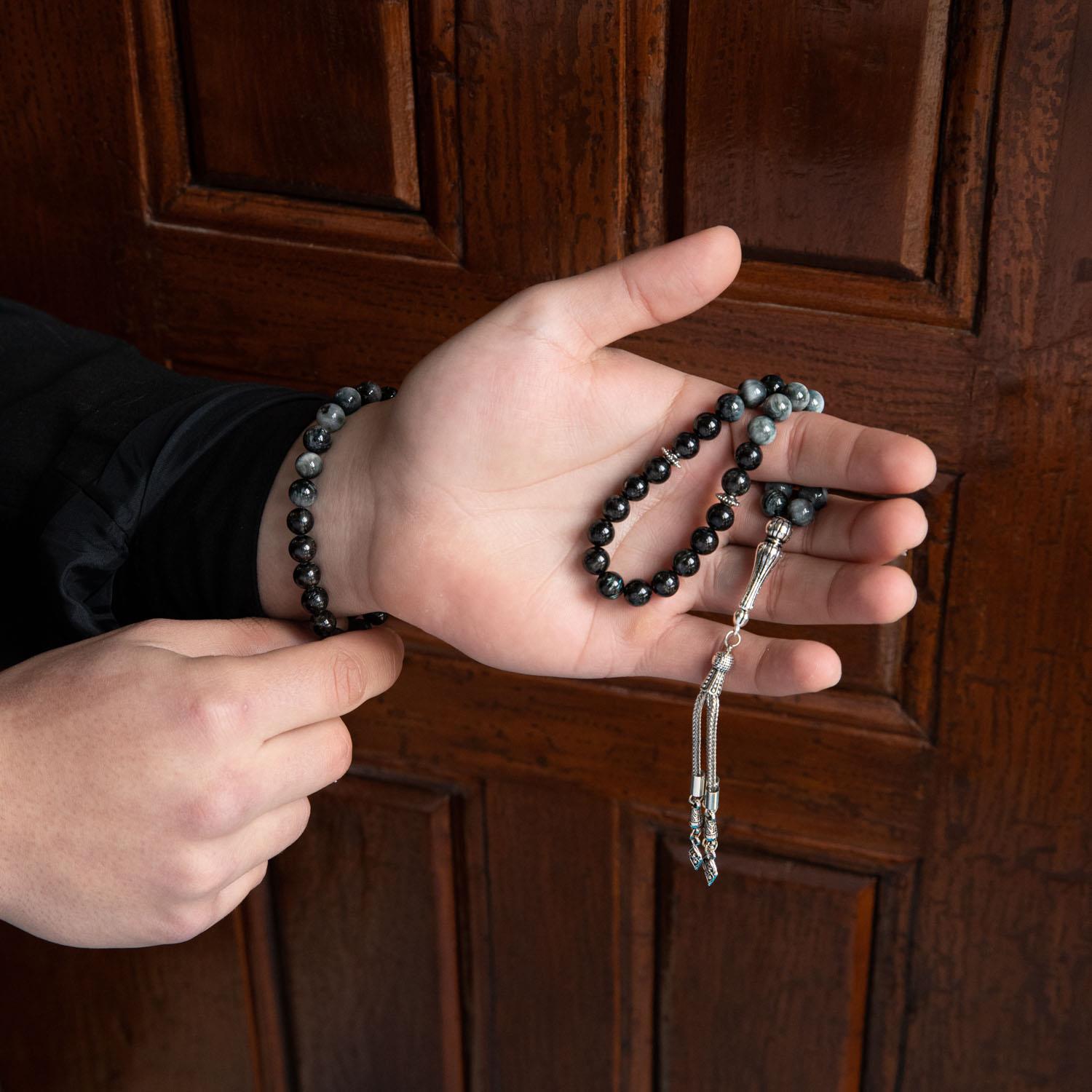 Kedi gözü taşının ışık oyunlu parlaklığı ile siyah turmalinin güçlü ve karizmatik görünümü, el işçiliğiyle hazırlanmış bu özel sette bir araya geliyor. Tesbih ve bileklikten oluşan bu tasarım; günlük kullanımda modern bir şıklık katarken, koleksiyonlarda da değerli bir parça olarak öne çıkar. Doğal taşların uyumlu birleşimi, maskülen ve sofistike bir duruş sunar.