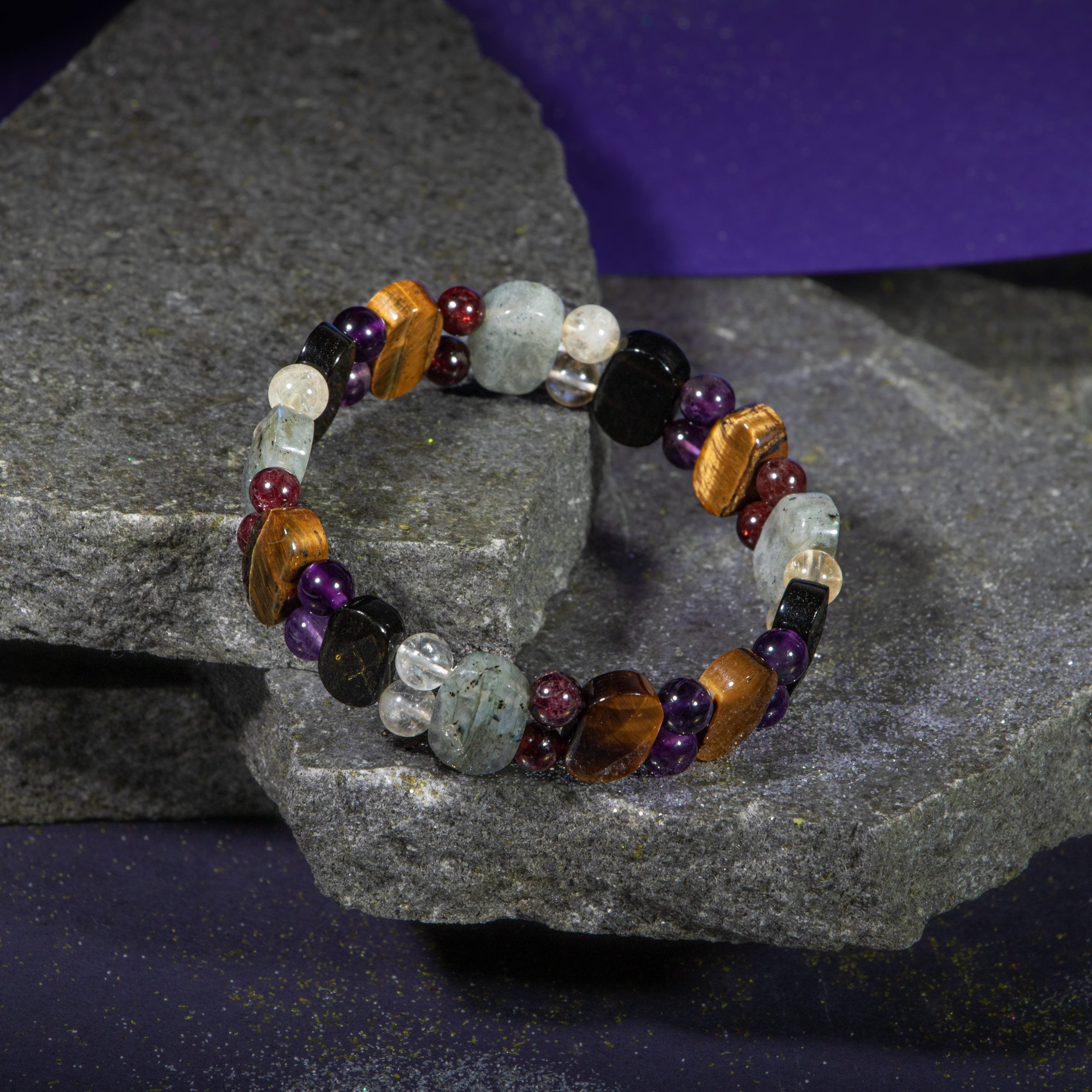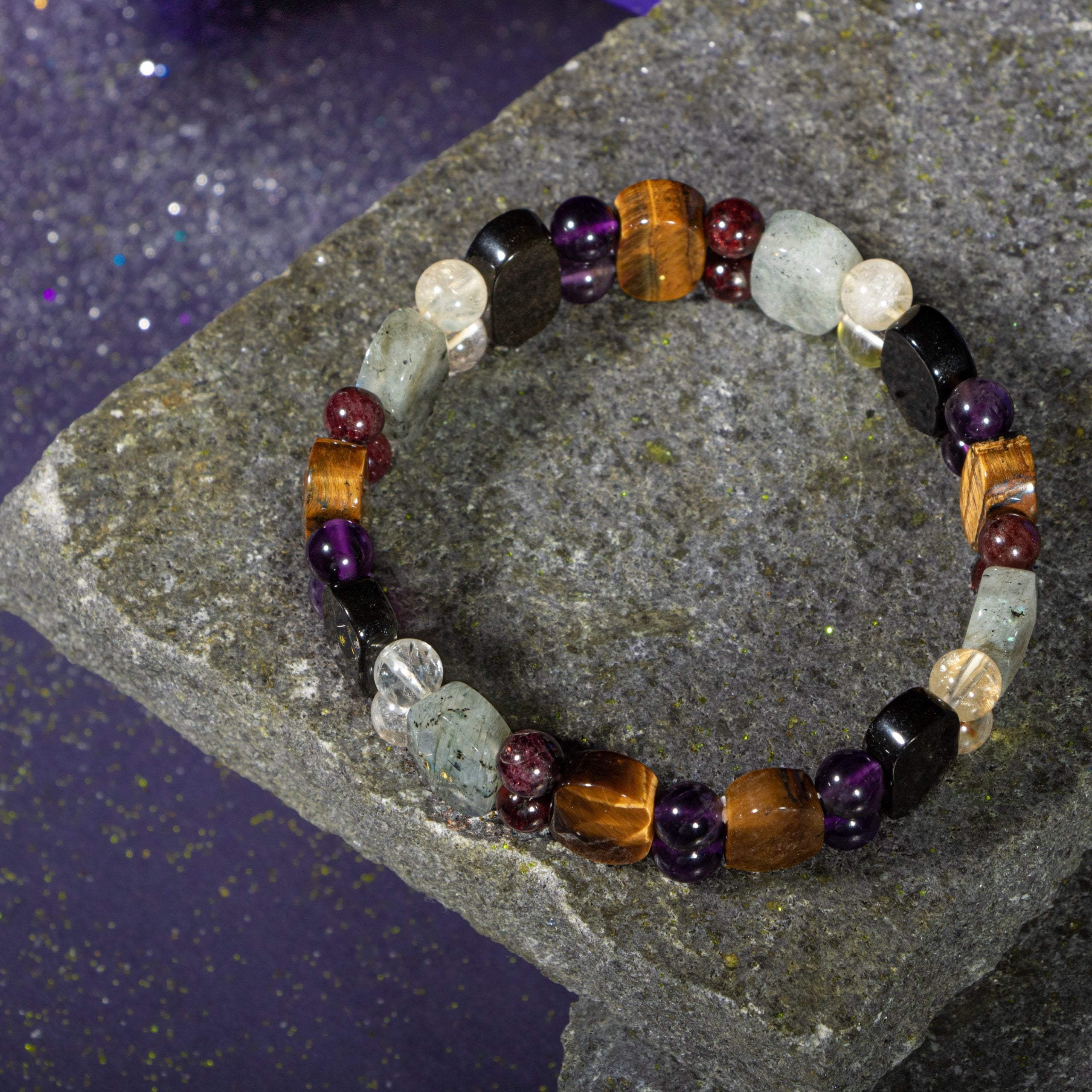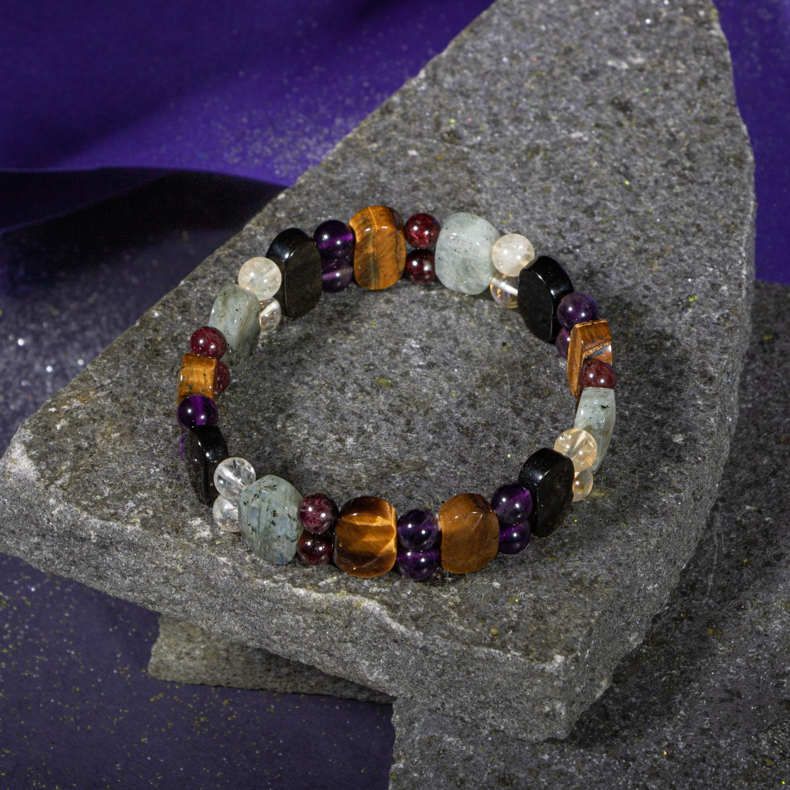 Akrep Burcu Doğal Taş Bileklik – Ametist, Granat Lal, Obsidyen, Kaplan Gözü, Labradorit & Sitrin