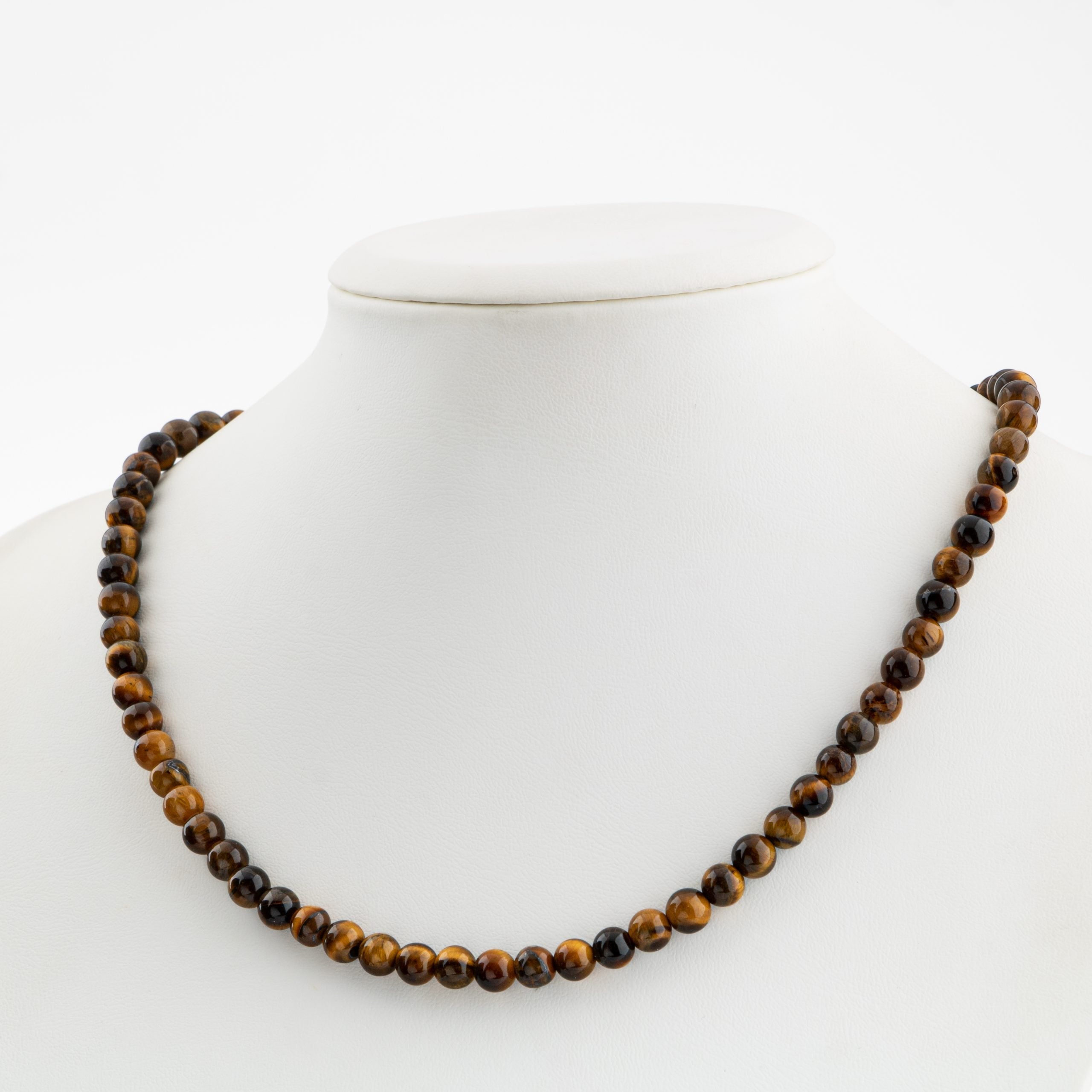 Kaplan Gözü Doğal Taş Kolye – 6 mm Dizi, Unisex Tasarım
