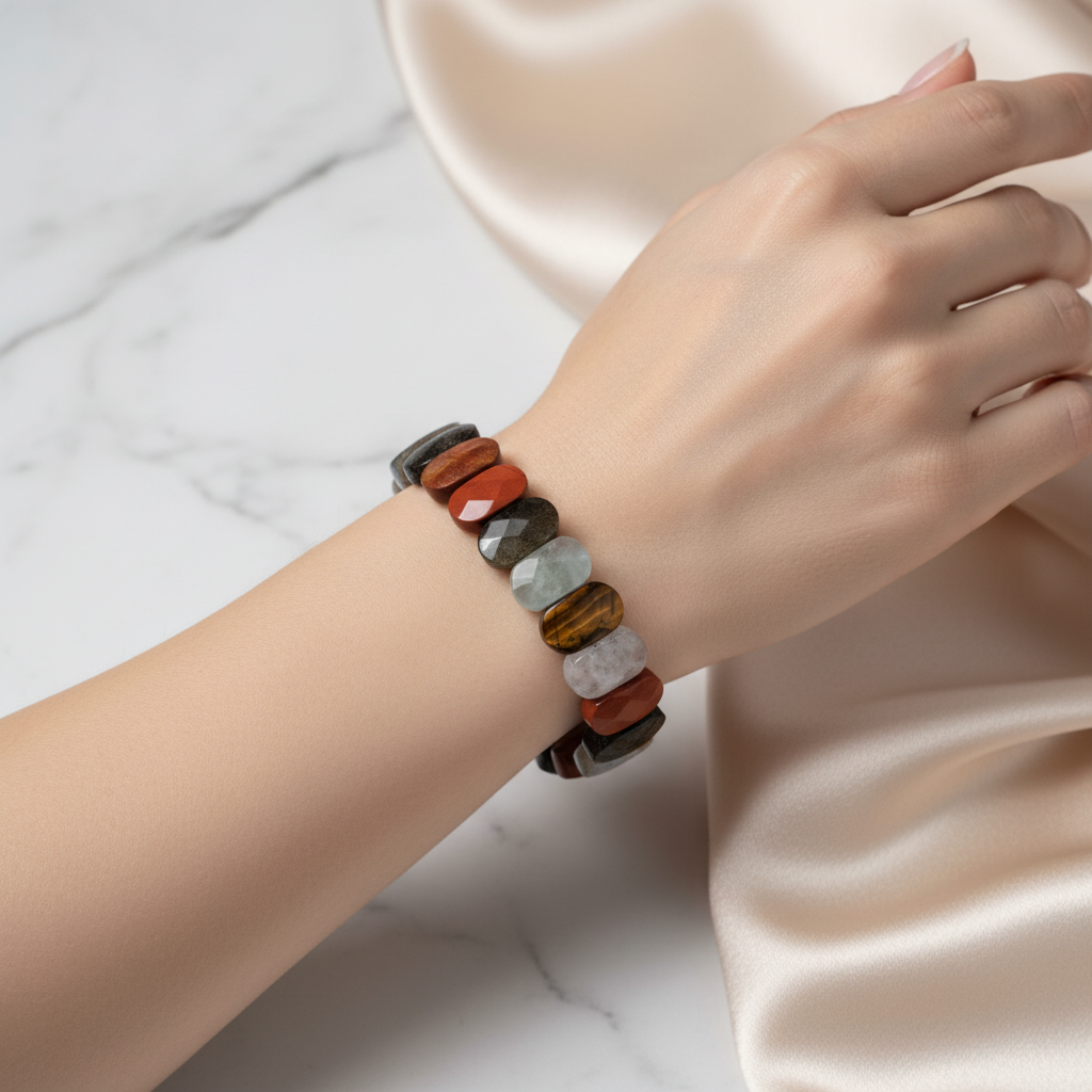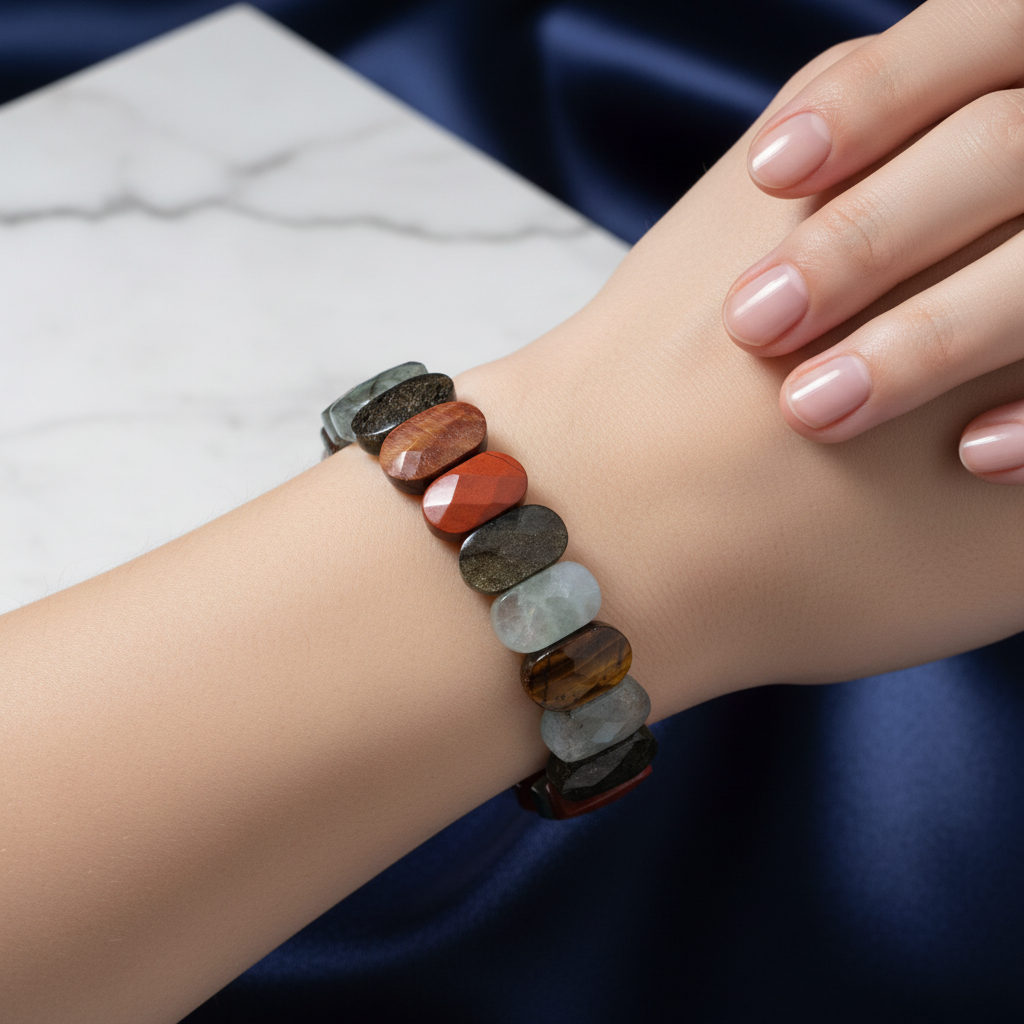 Kova Burcu Doğal Taş Bileklik – Akuamarin, Granat Lal, Jasper, Kaplan Gözü, Labradorit, Obsidyen, Selenit & Yeşil Florit